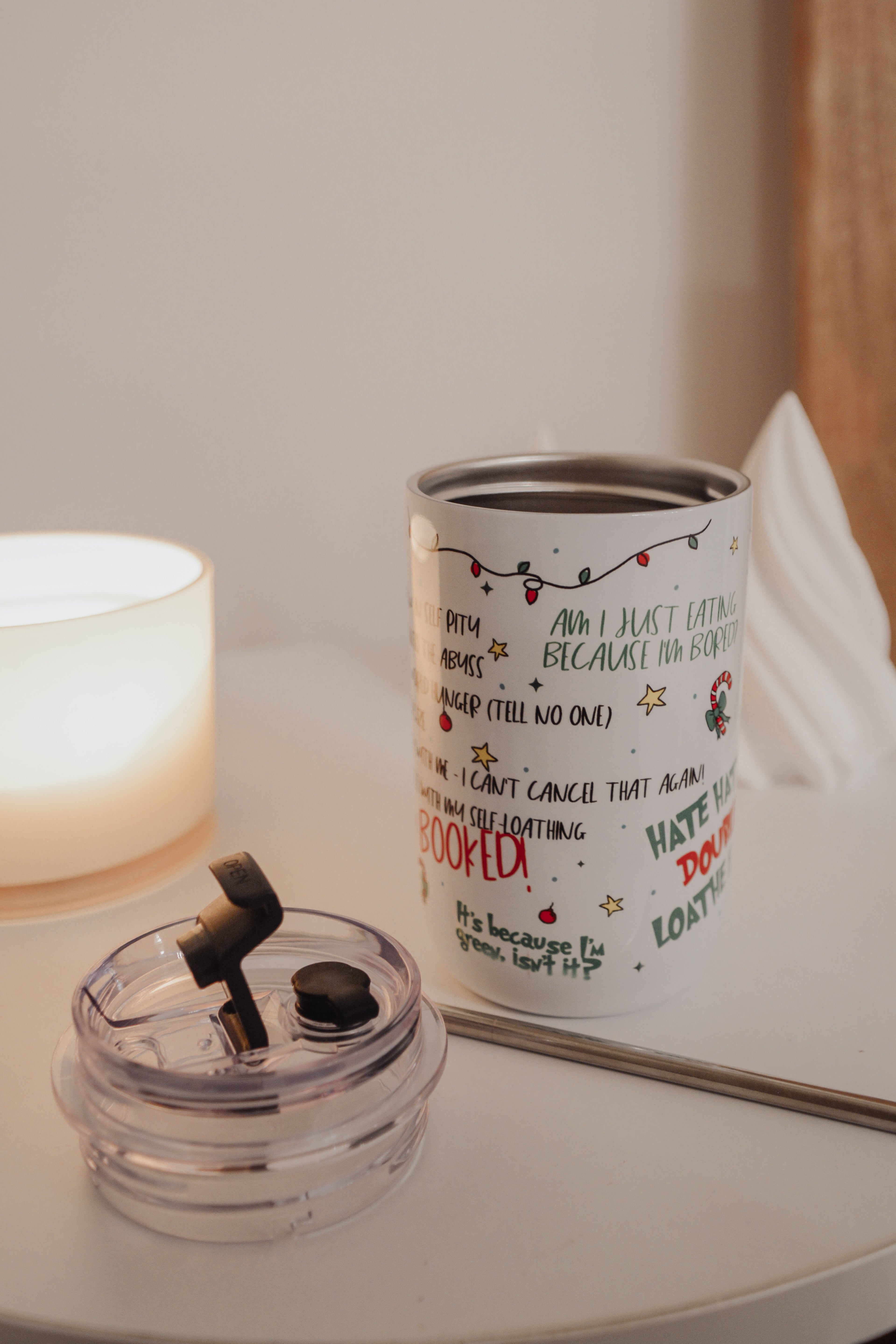 Inspired by that popular Christmas film we all love to laugh at... this tumbler features some of the most laughable and memorable quotes, so you can enjoy your warm drink with a smile this holiday season.