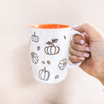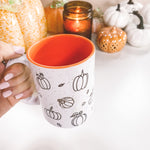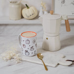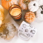 This ones for the autumn obsessed! Featuring our illustrated pumpkin and gourds printed in black around the mug with a light brown speckled background. It's perfect for hosting your pumpkin spice latte on those chilly mornings!