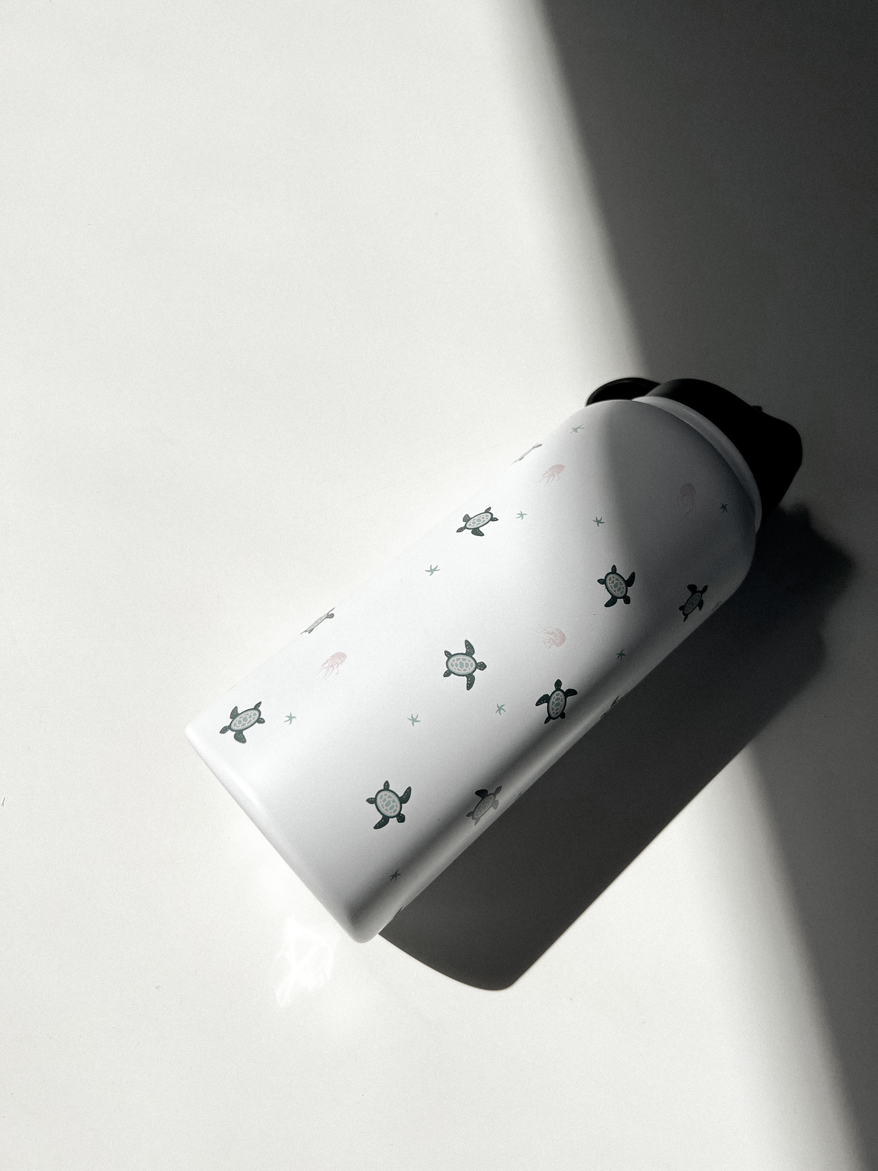 This super cute design features cute turtles, jelly fish and star fish on a stunning sage green and muted pink colour palette.