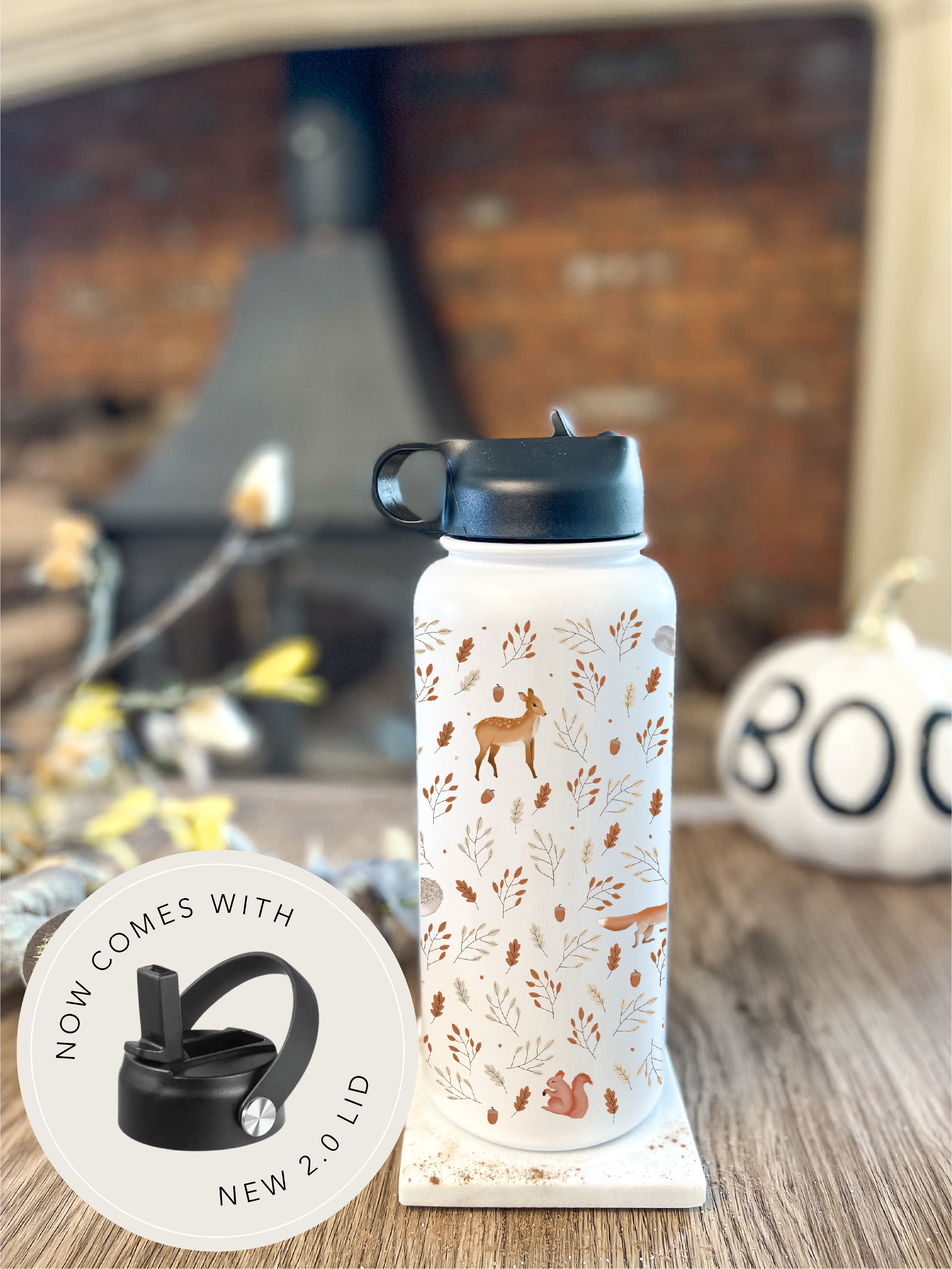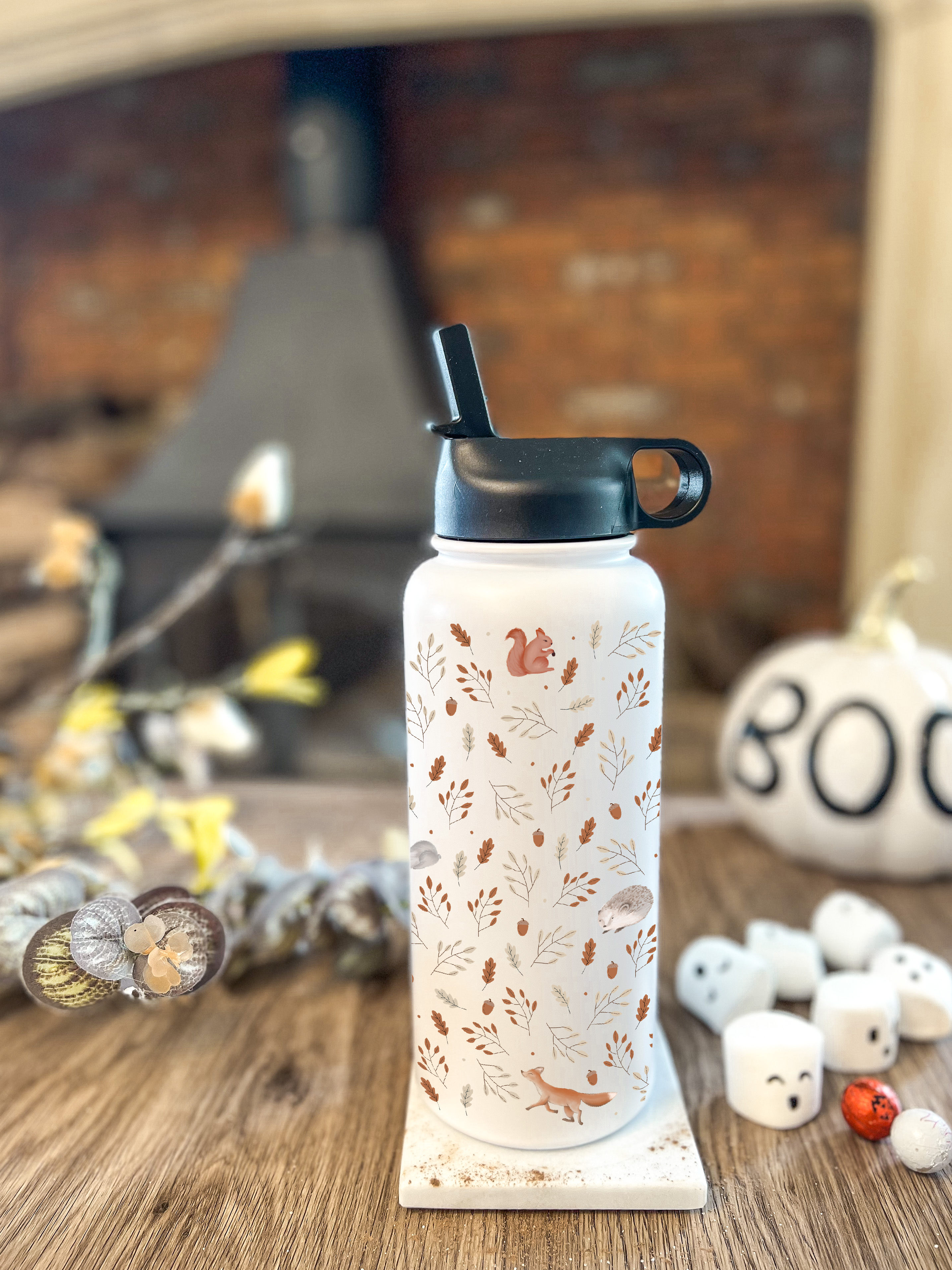 Our Woodlands design featuring woodland wildlife and leaves patterned around the BBottle.