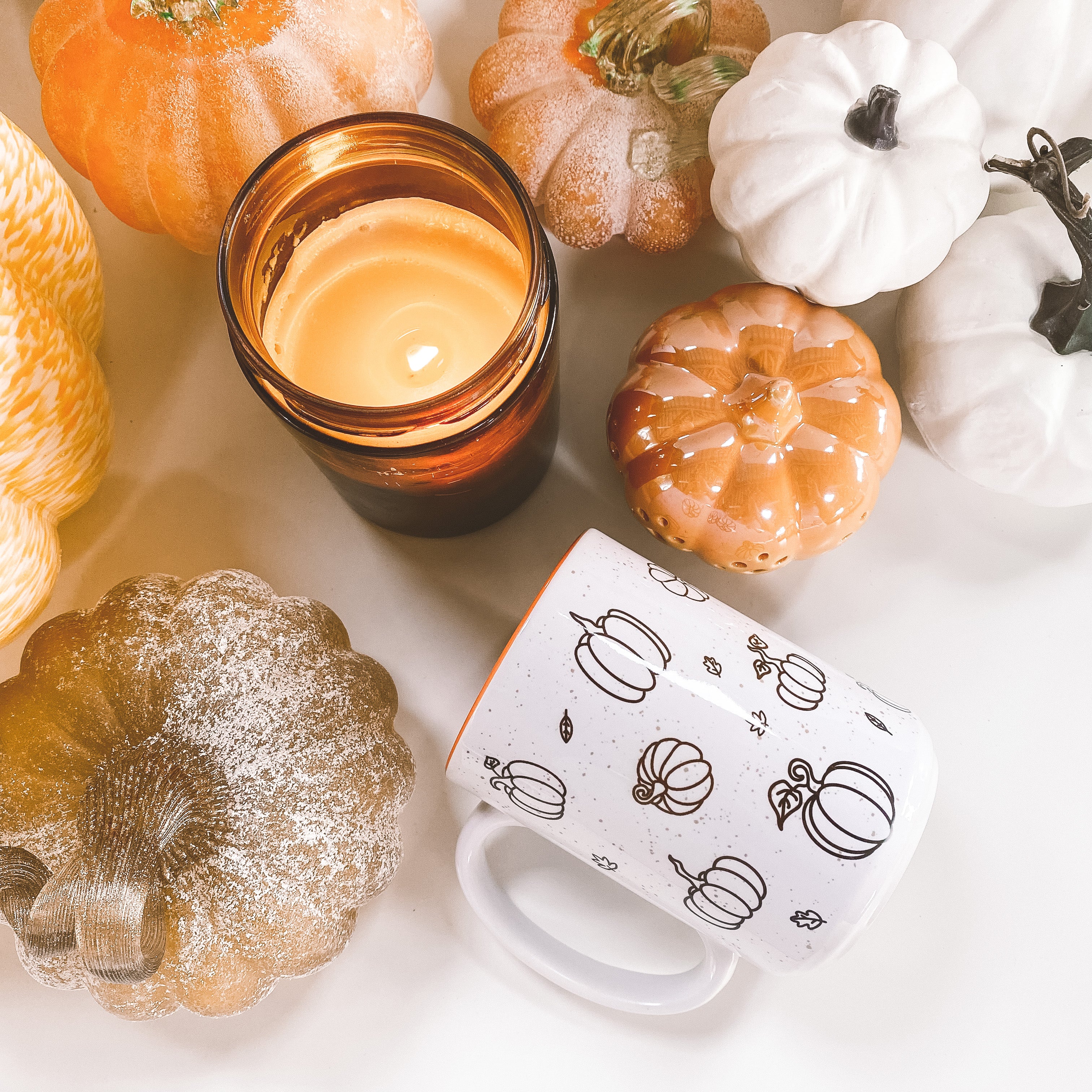 This ones for the autumn obsessed! Featuring our illustrated pumpkin and gourds printed in black around the mug with a light brown speckled background. It's perfect for hosting your pumpkin spice latte on those chilly mornings!
