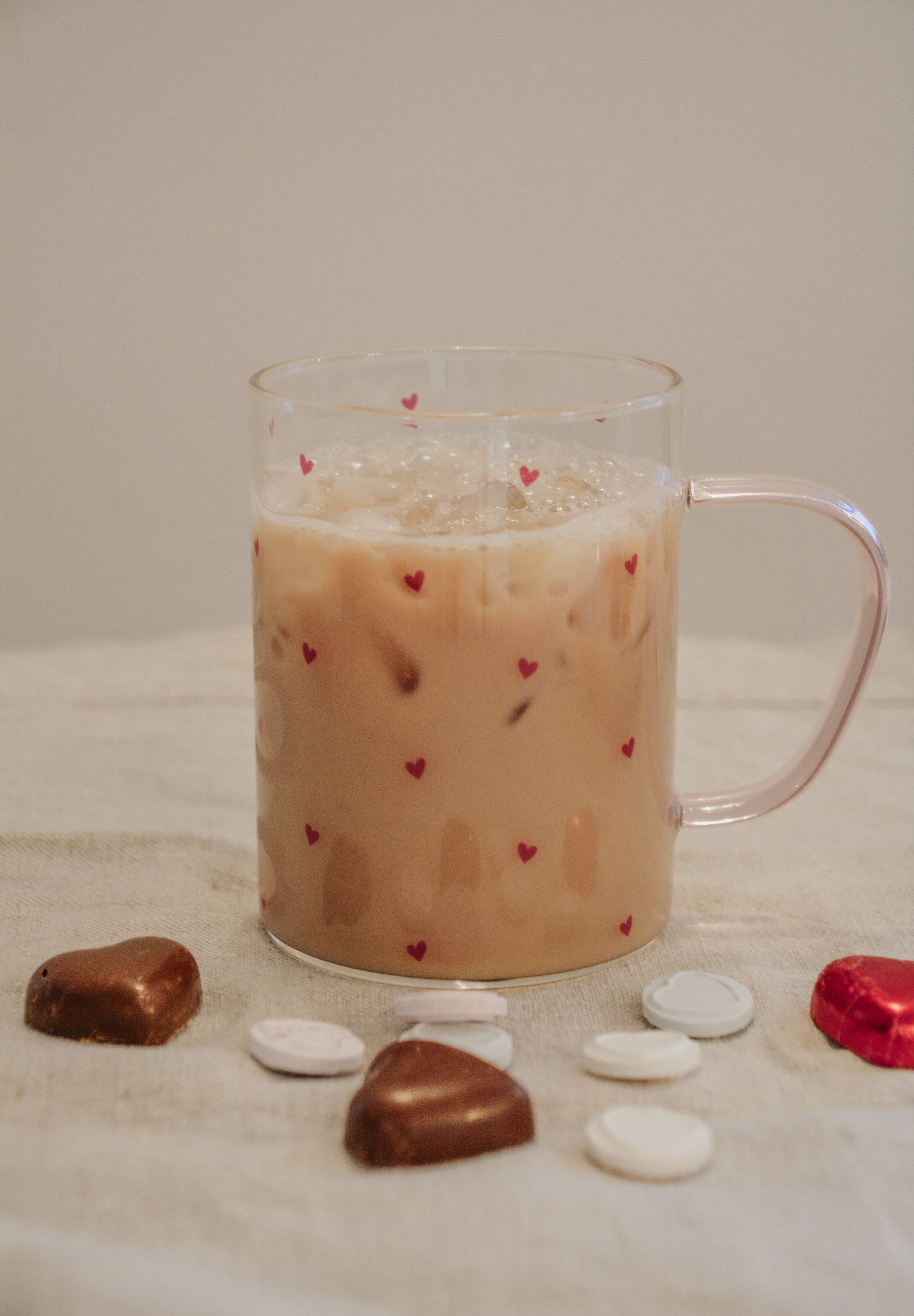 Hot Pink Love Hearts Glass Mug