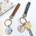 Personalised Photo Keyring with Faux Leather Strap - Black