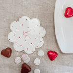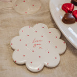 Celebrate love every day with our Love Hearts Ceramic Flower Shape Coaster. Perfect for Valentine's Day or any day, these coasters can feature your own personalised message and add a cute touch to your home decor.