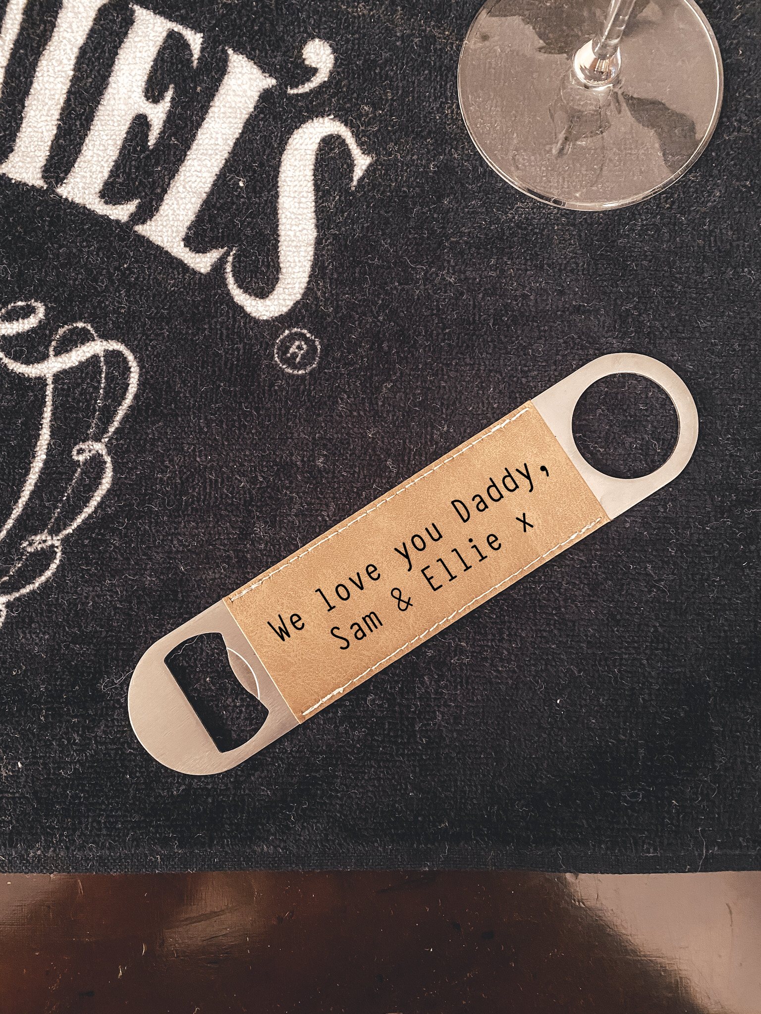 Personalised Message Faux Leather Bar Blade and Bottle Opener - Brown