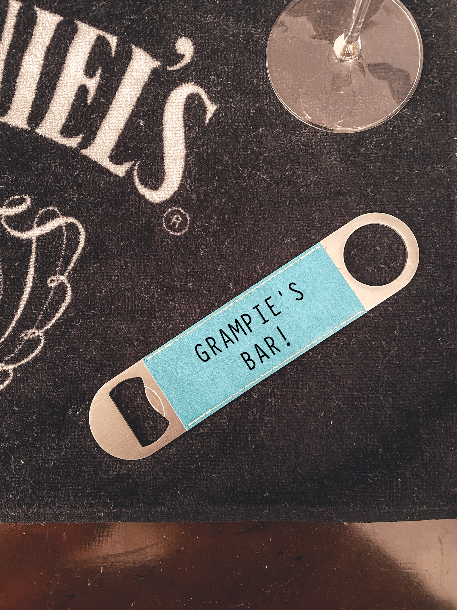 Personalised Message Faux Leather Bar Blade and Bottle Opener - Teal
