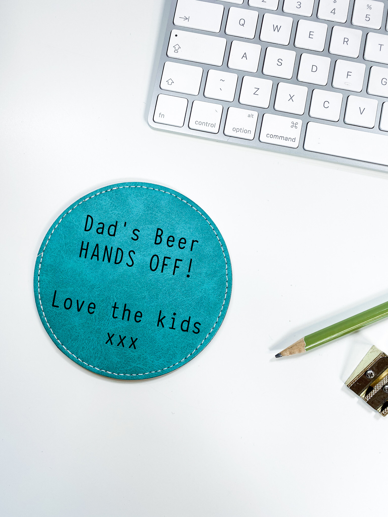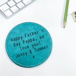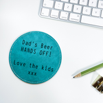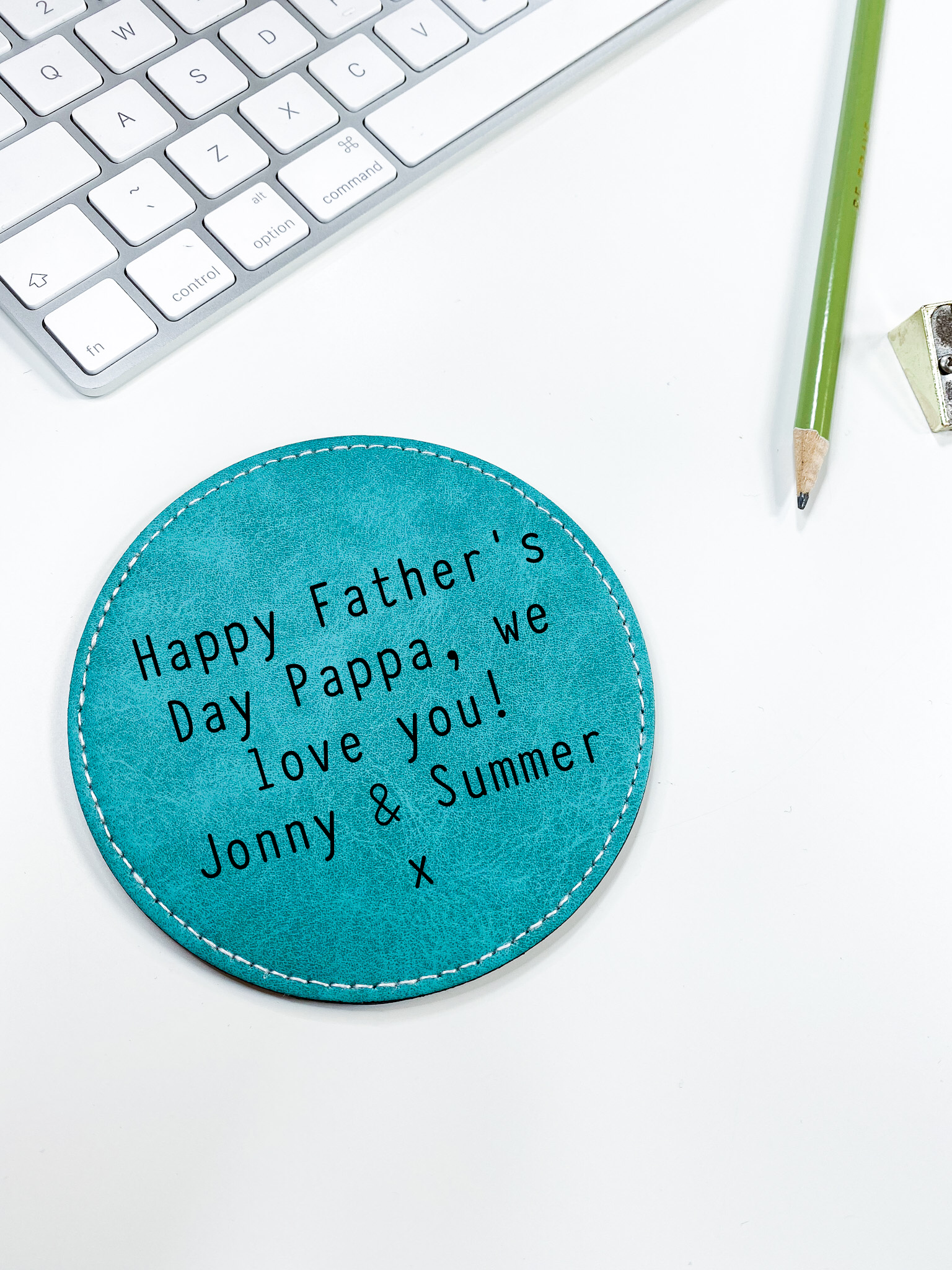Send someone a special message with these faux leather coasters that will make the user think of you with every use.