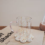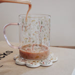 These chic glass mugs are the perfect accompaniment to your desk or dinner table. The subtle floral print and straight profile of the mug adds a delicate touch to your slow morning.