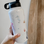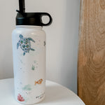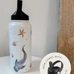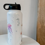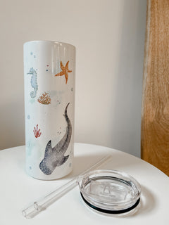 This stunning design features an array of watercolour sea creatures, such as a whale shark, jelly fish, sea horse and turtle. The design is complete with bubbles and corals around the entirety of the tumbler.
