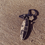 ● Features our hand drawn illustration and two charms on a shell shaped metal clasp