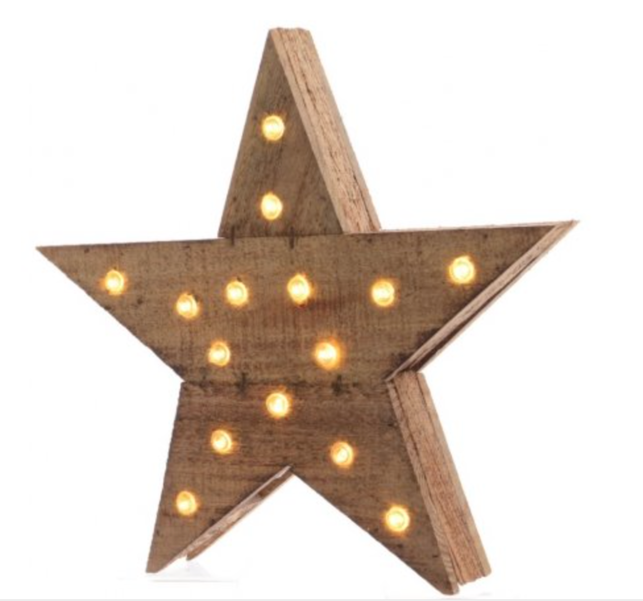 Add a touch of glamour to your home with this rough luxe wooden star decoration with LED lighting.