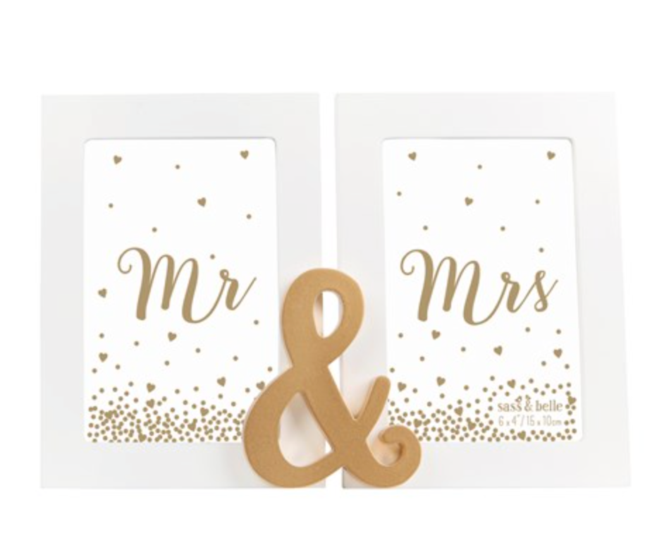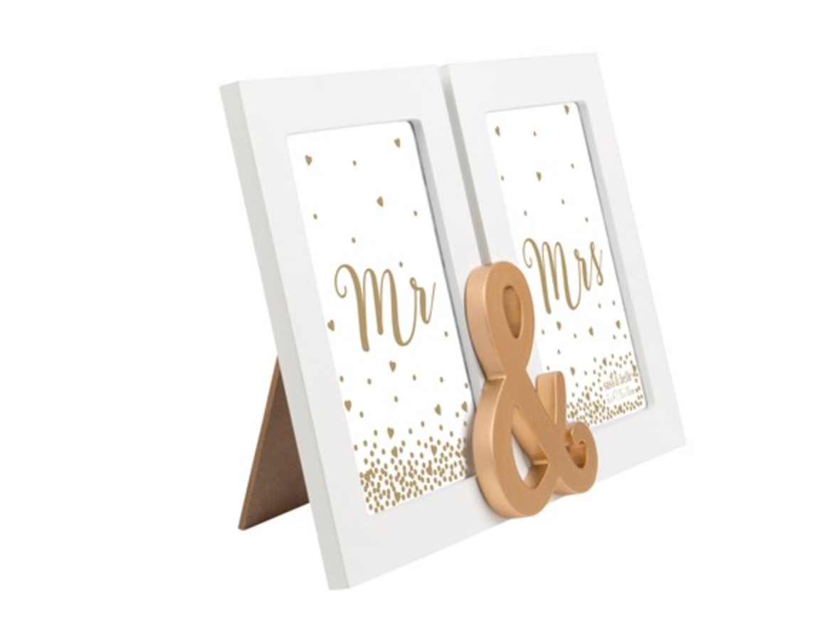 MR & MRS GOLD DOUBLE PHOTO FRAME