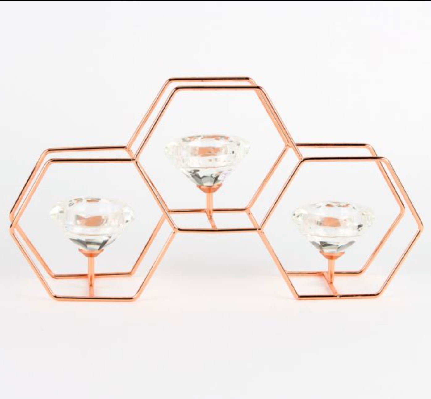 ROSE GOLD TRIPLE HEXAGONAL T LITE HOLDER