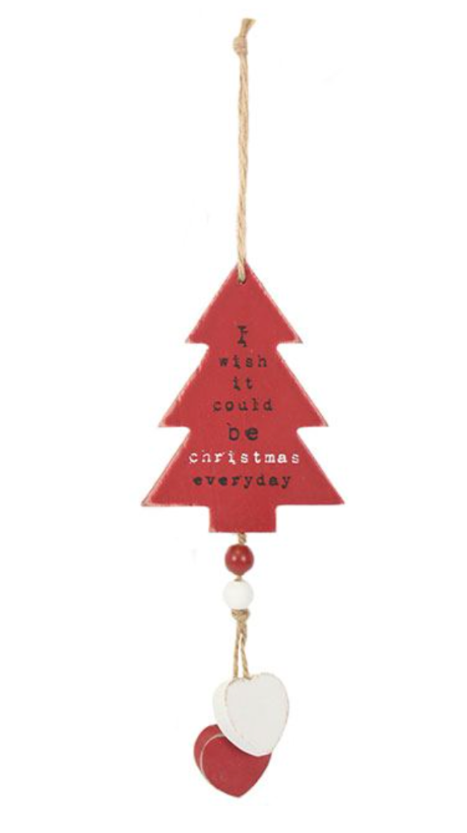 Lovely red Christmas tree hanging decoration with the text: 'I wish it could be Christmas everyday'.
