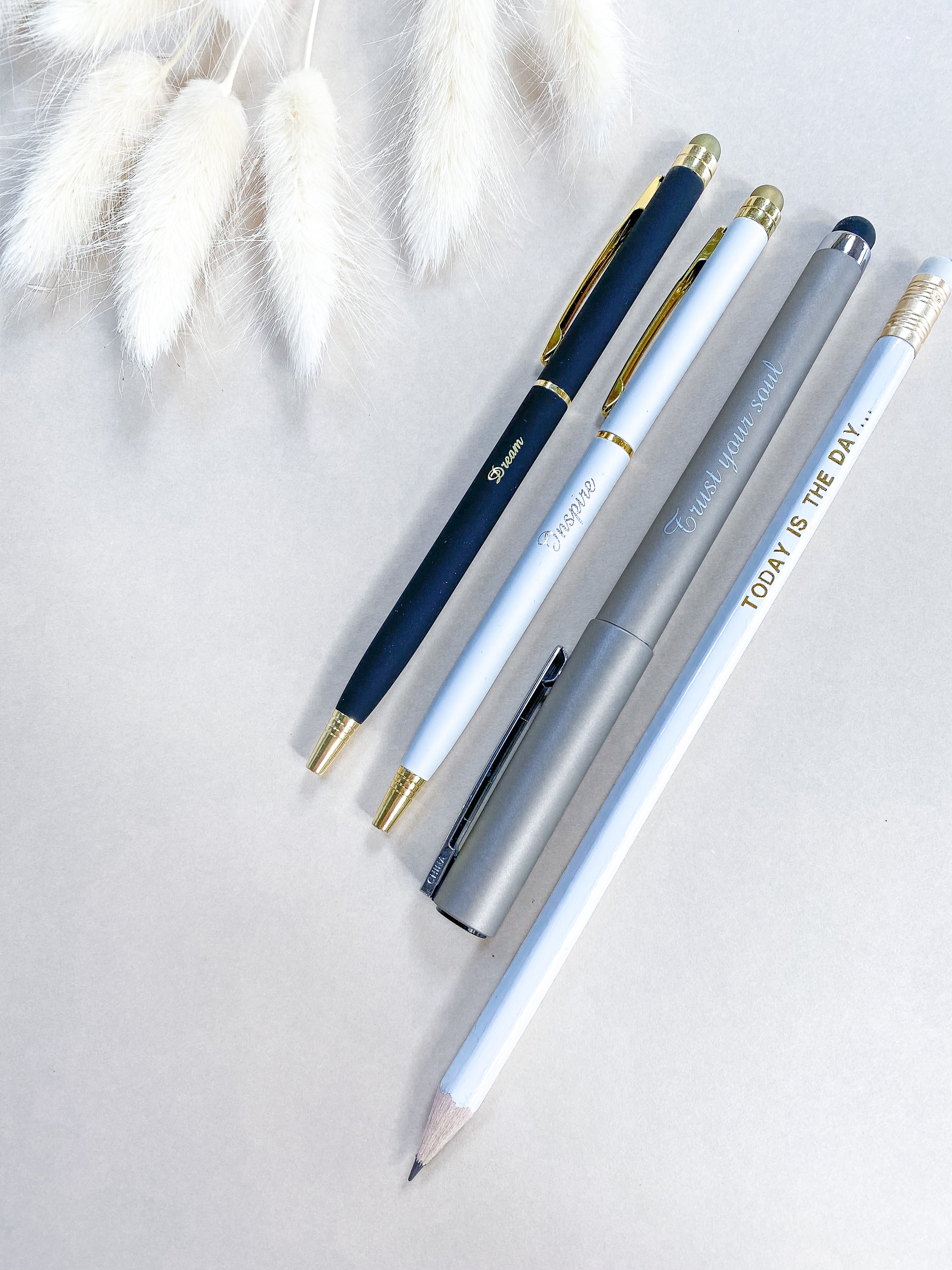 Our full set of motivational pens and pencil; buy together as a set to save money.