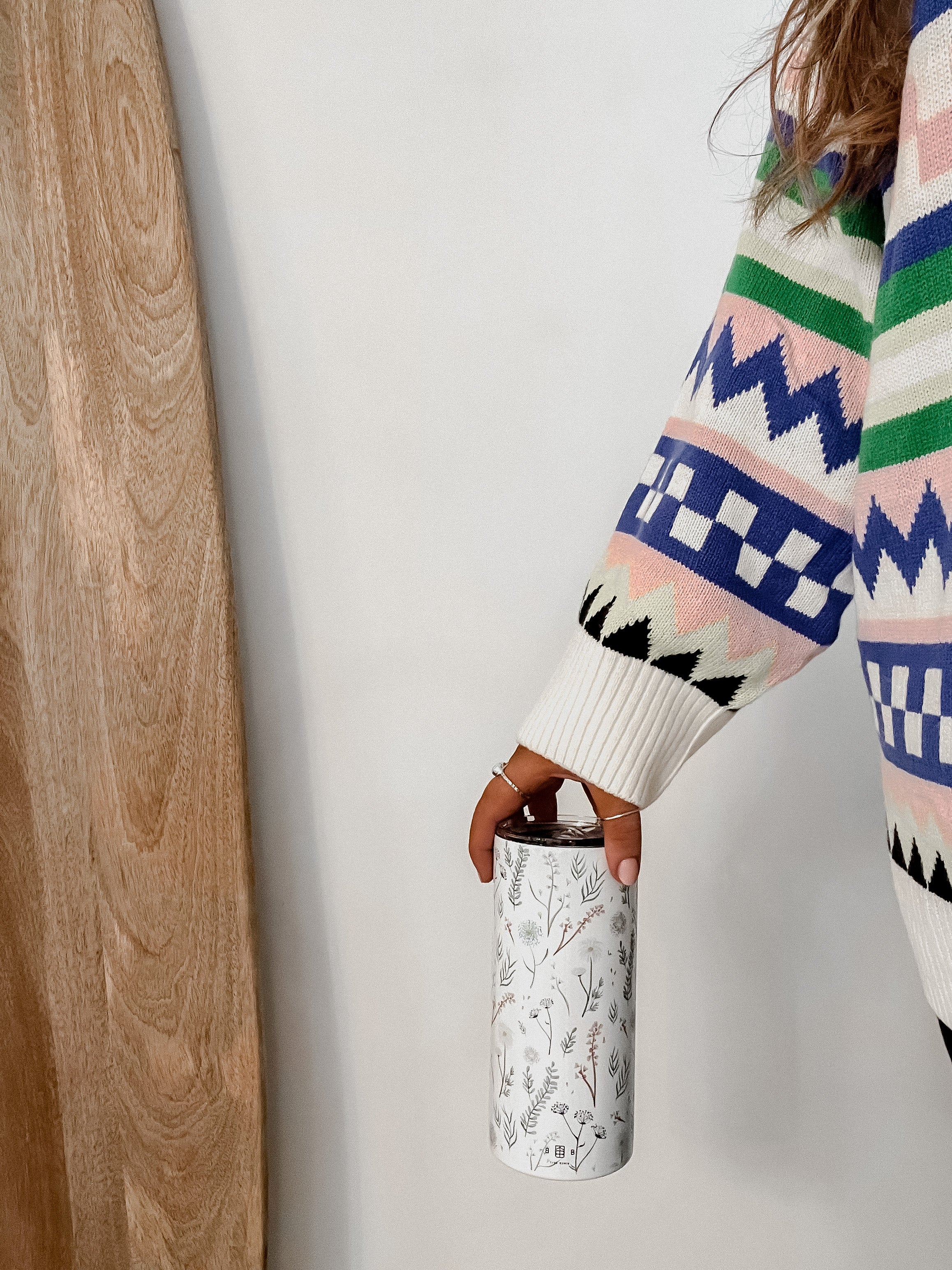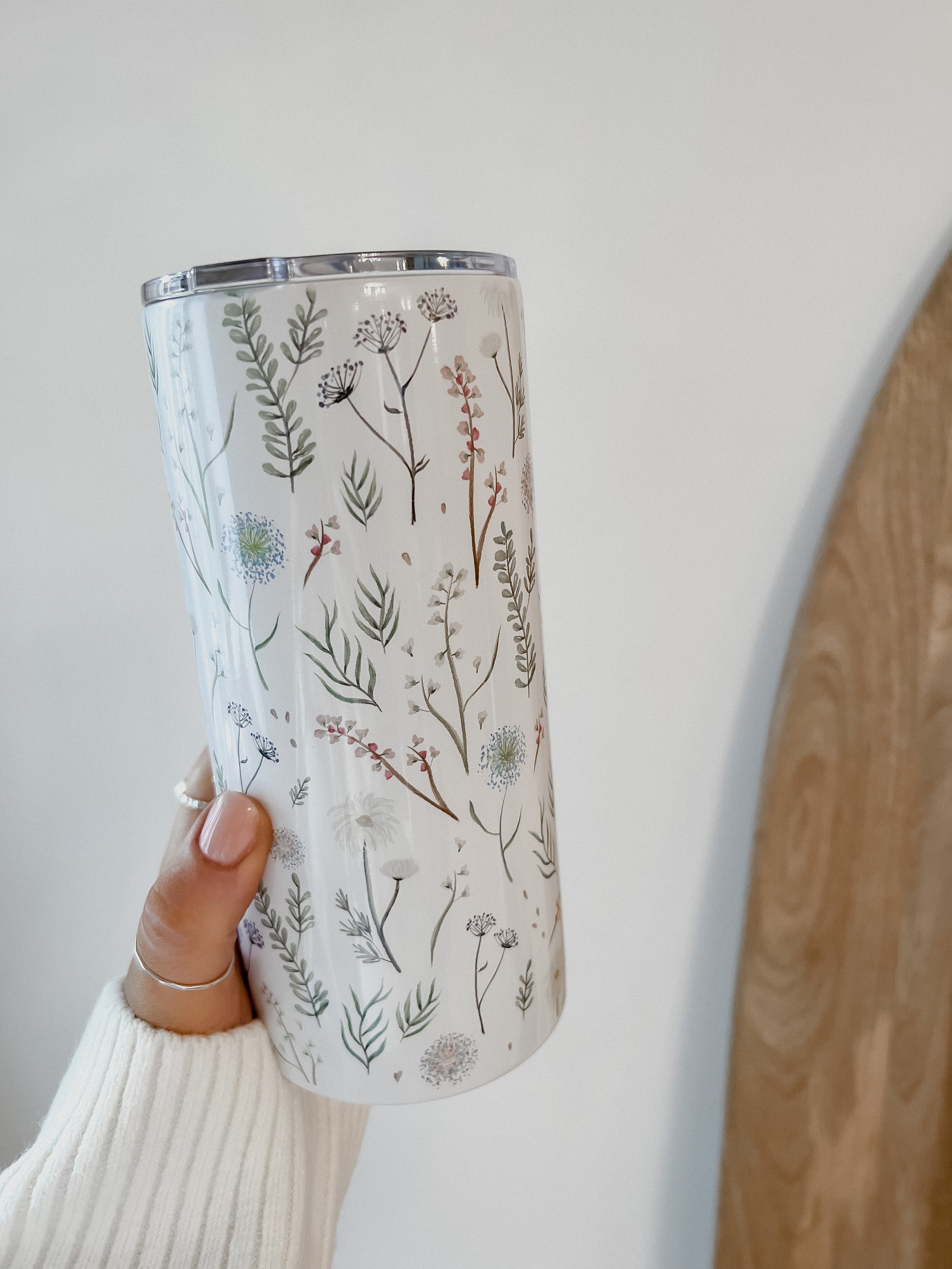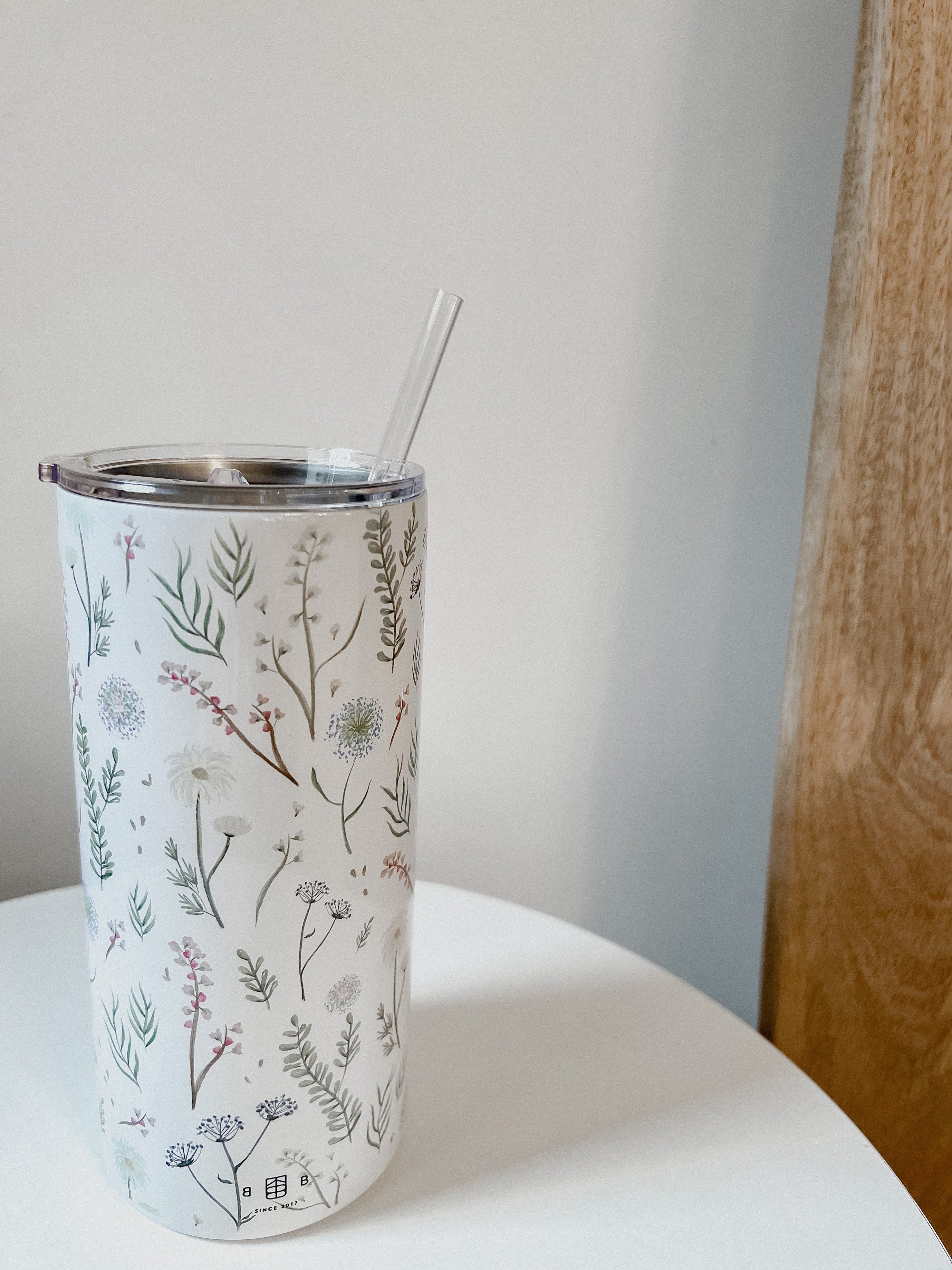 Enjoy an extra large coffee or soda out in the wild with our new straight tumbler printed with our popular Wildflower design.