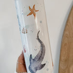 This stunning design features an array of watercolour sea creatures, such as a whale shark, jelly fish, sea horse and turtle. The design is complete with bubbles and corals around the entirety of the tumbler.