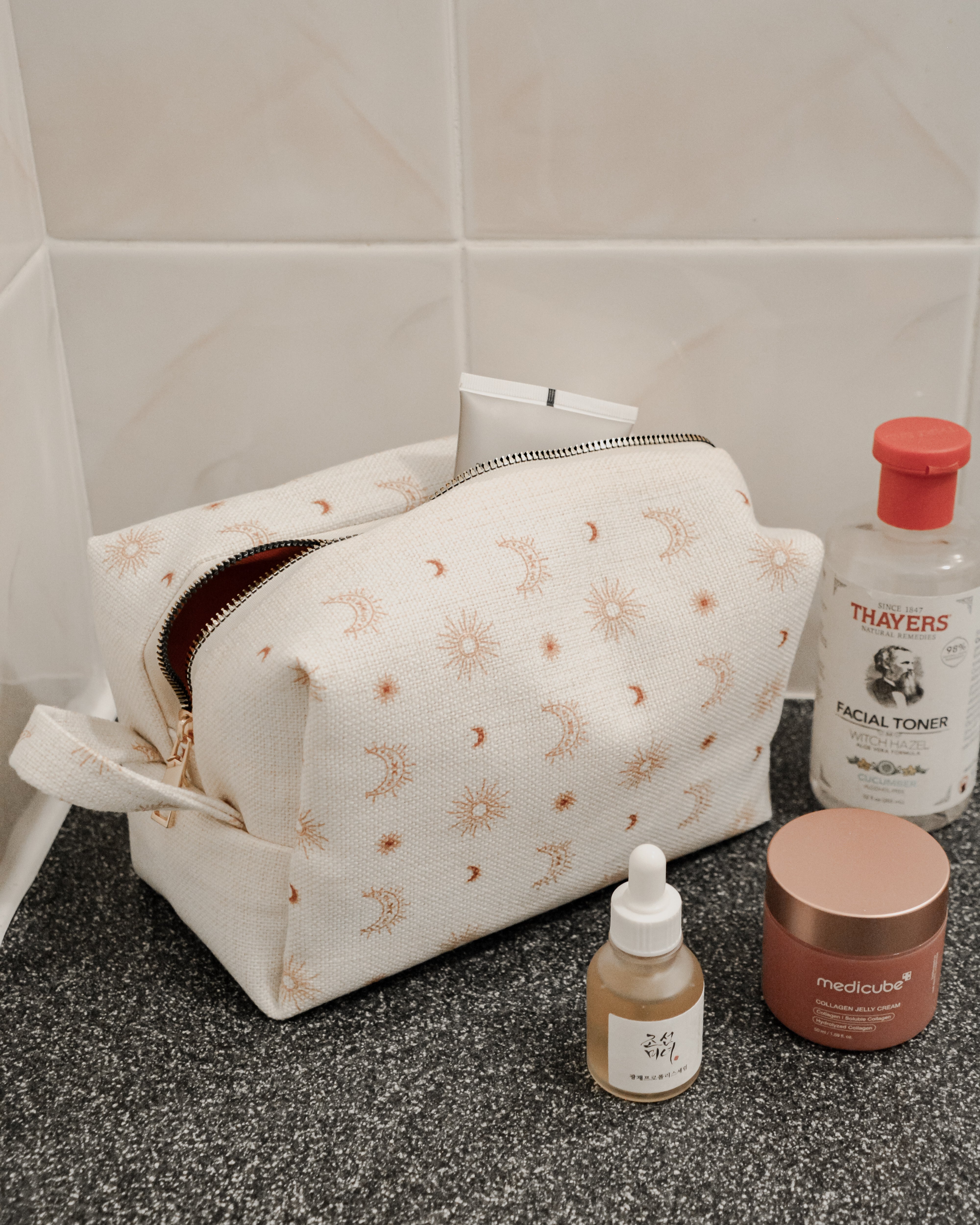 Want to carry your cosmetics as well as skincare? Then this bag is for you. You'll fit your make-up and a few bottles/tubs of your skincare favourites in this one.