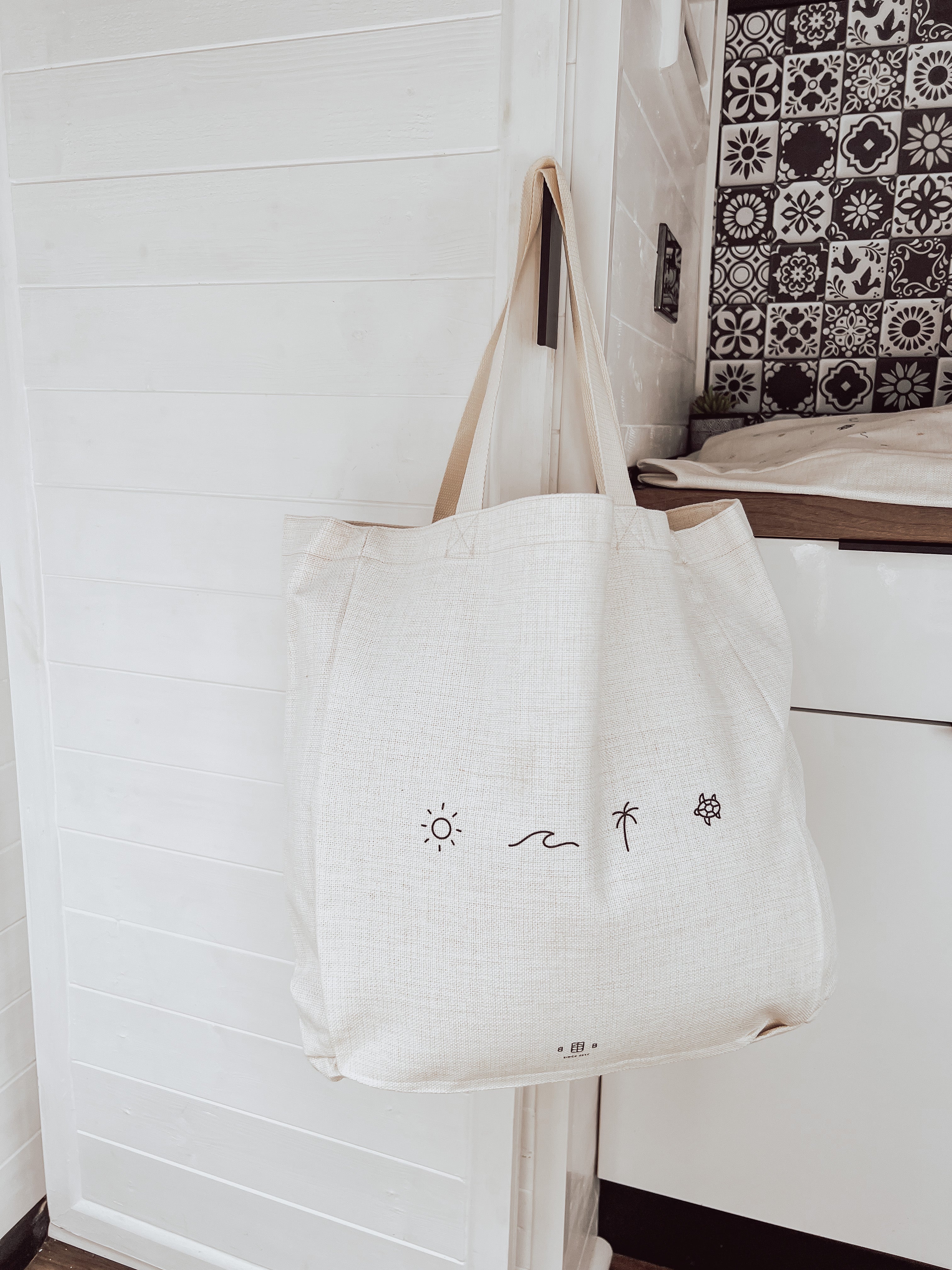 Our self branded For The Living slogan makes it's debut on our favourite linen tote bags.