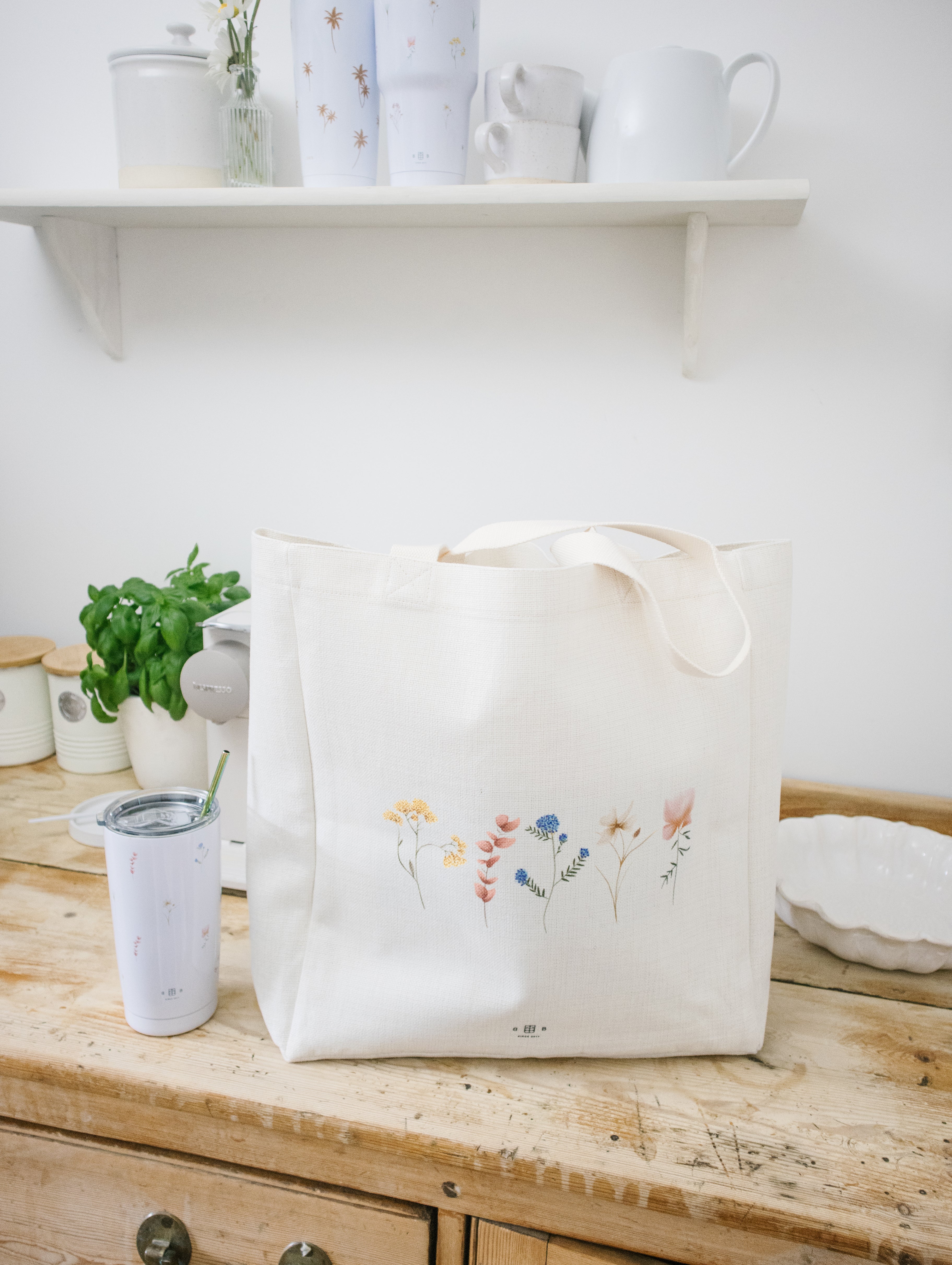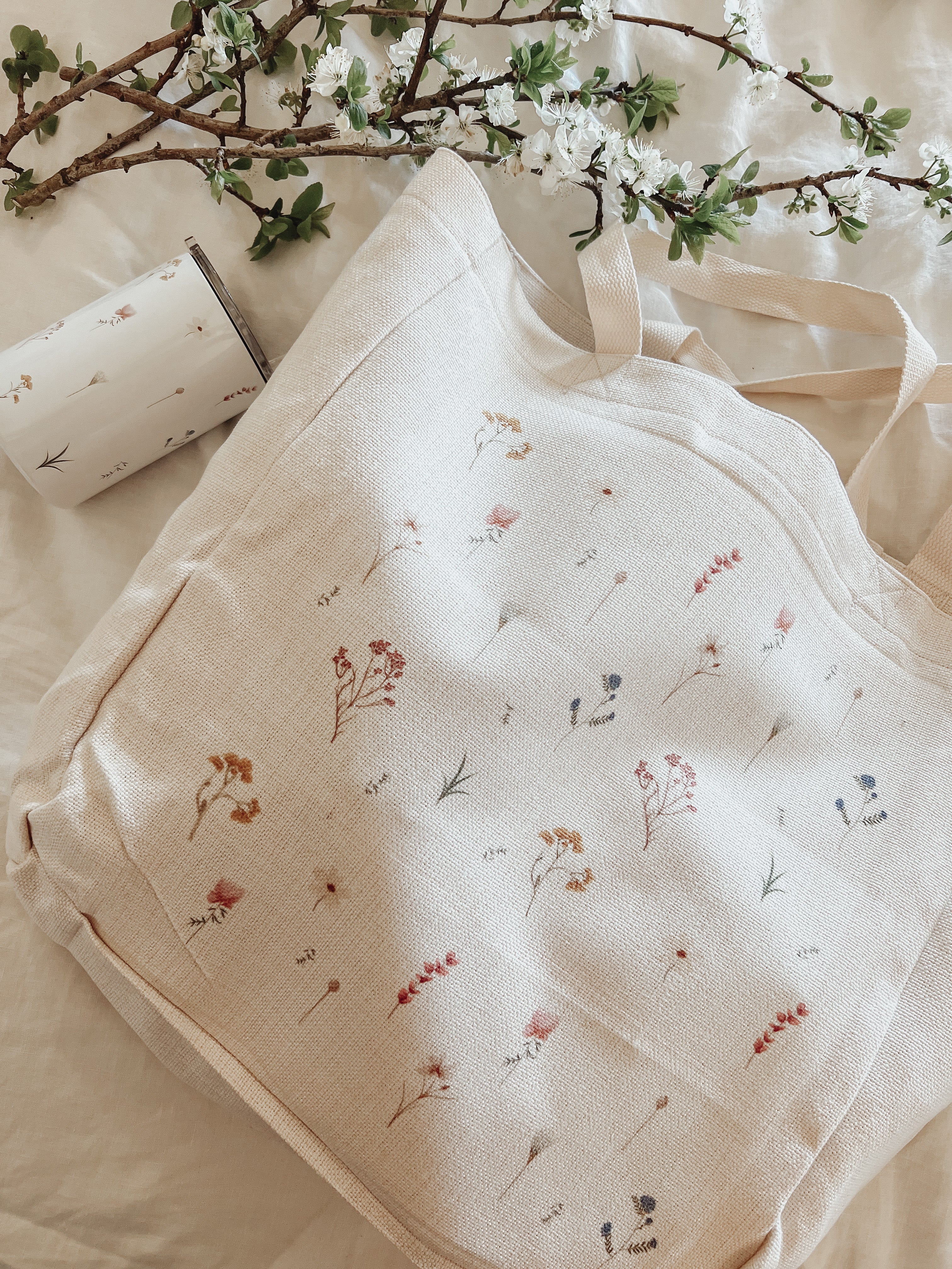 Pressed Flowers Linen Effect Tote