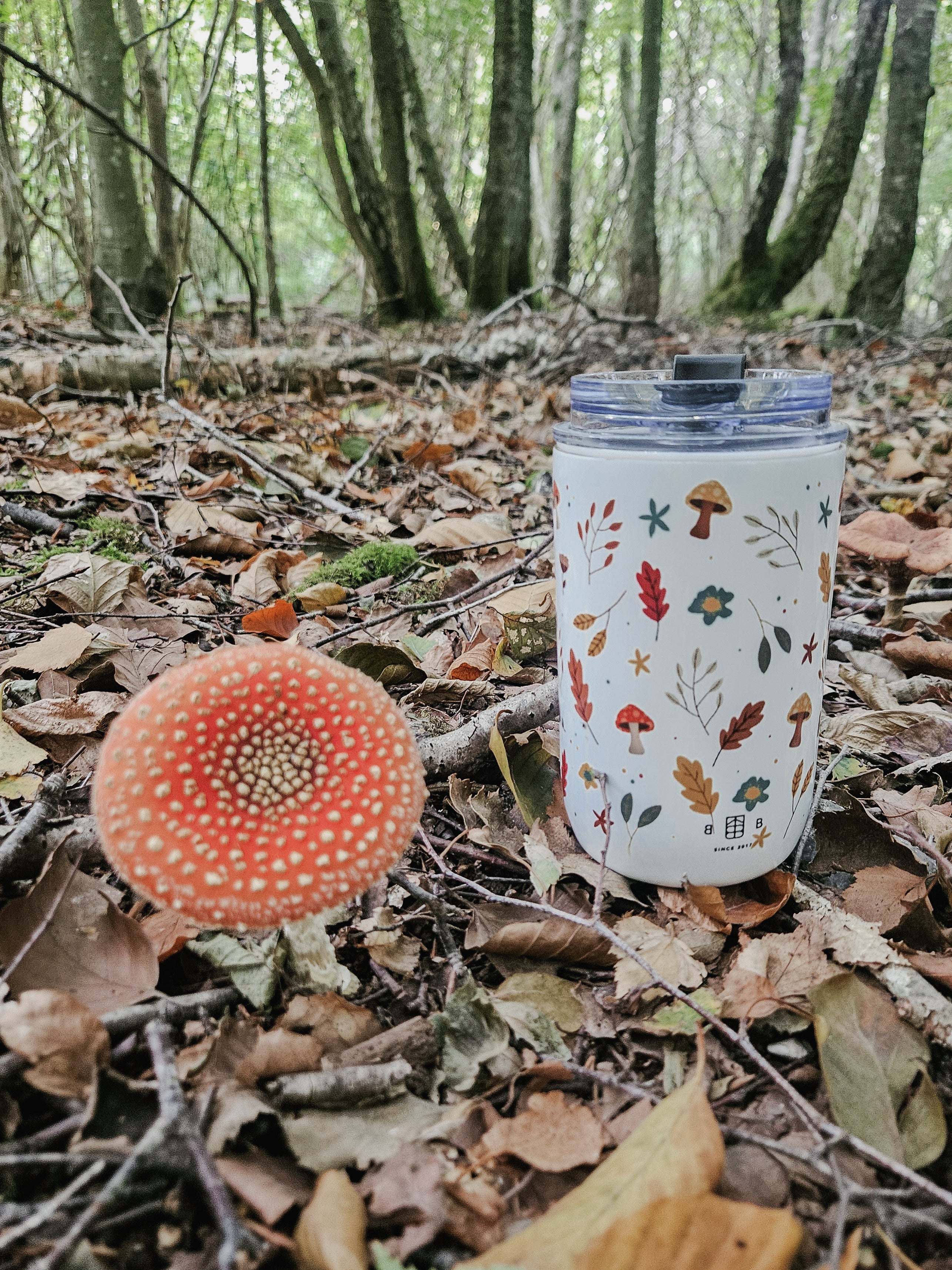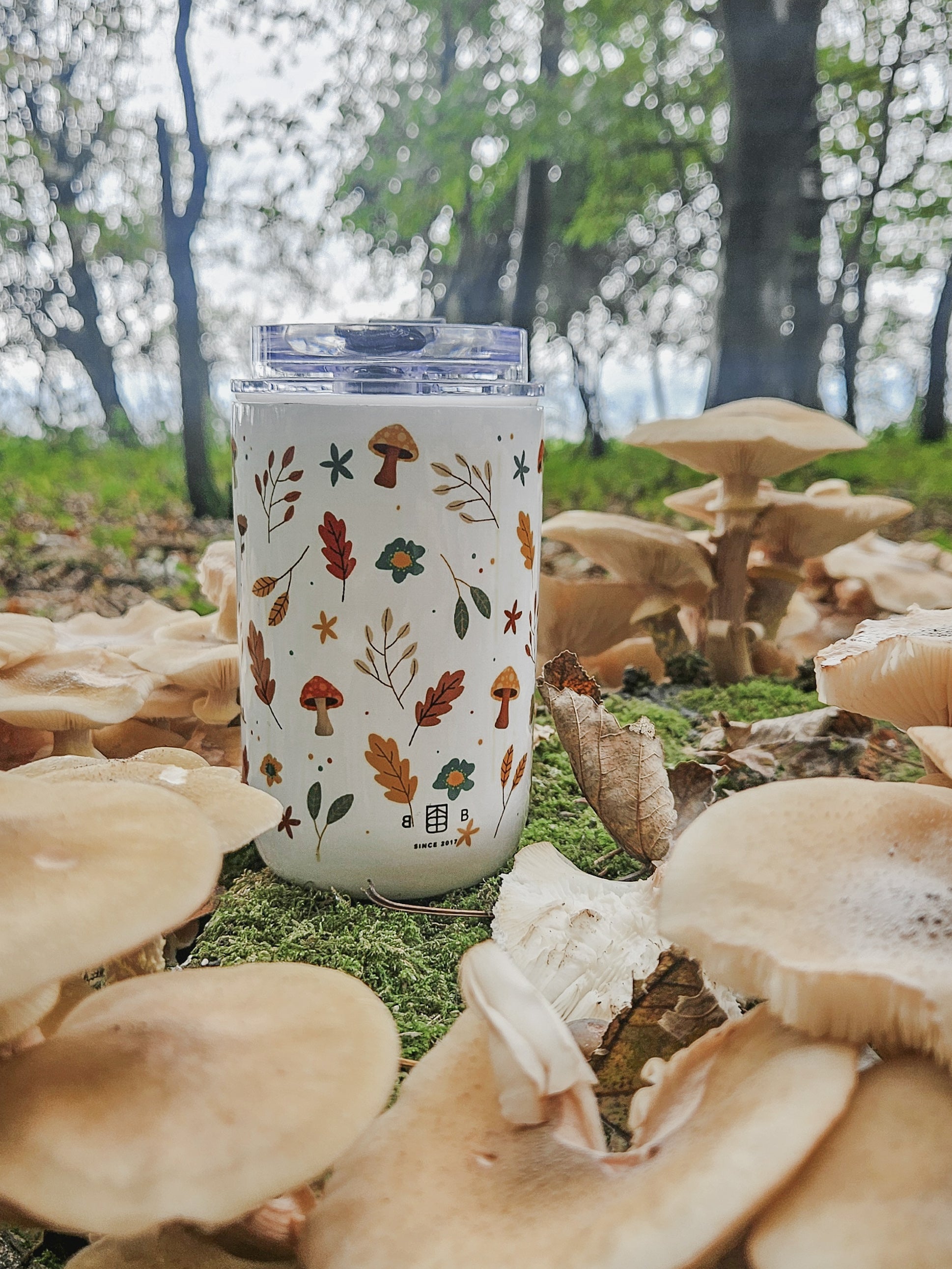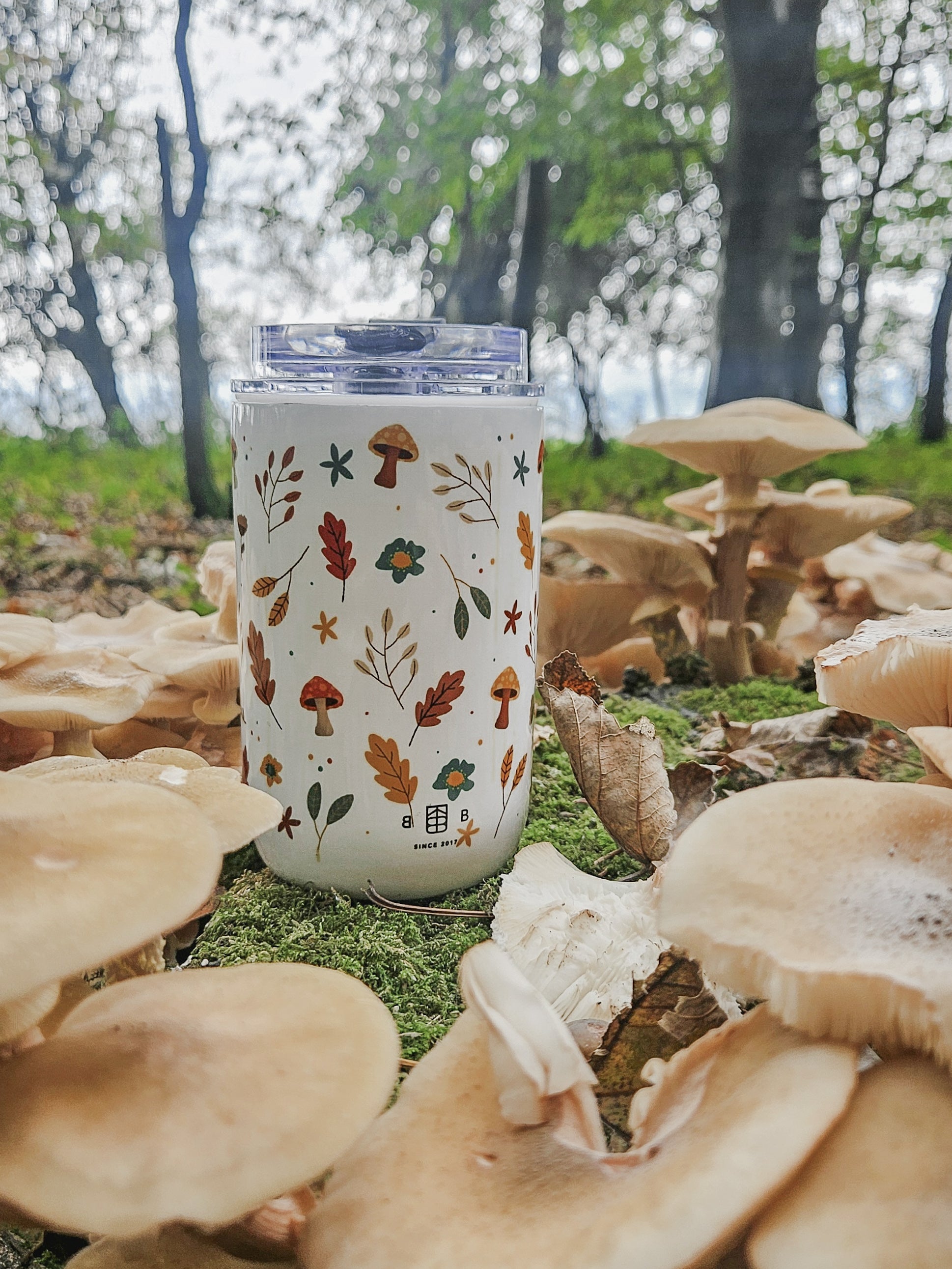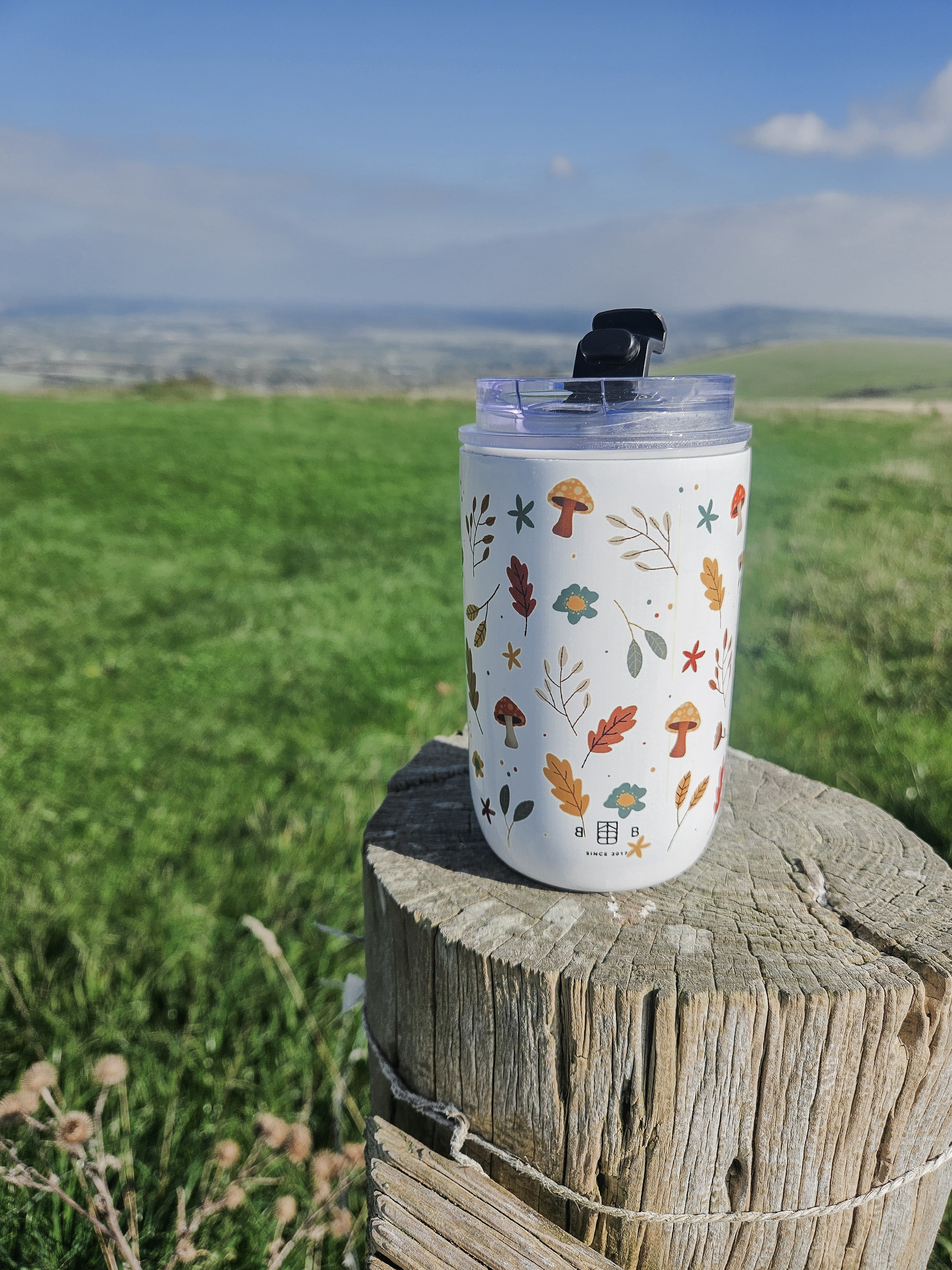 Our Autumn Stroll design in a seamless pattern around the tumbler.