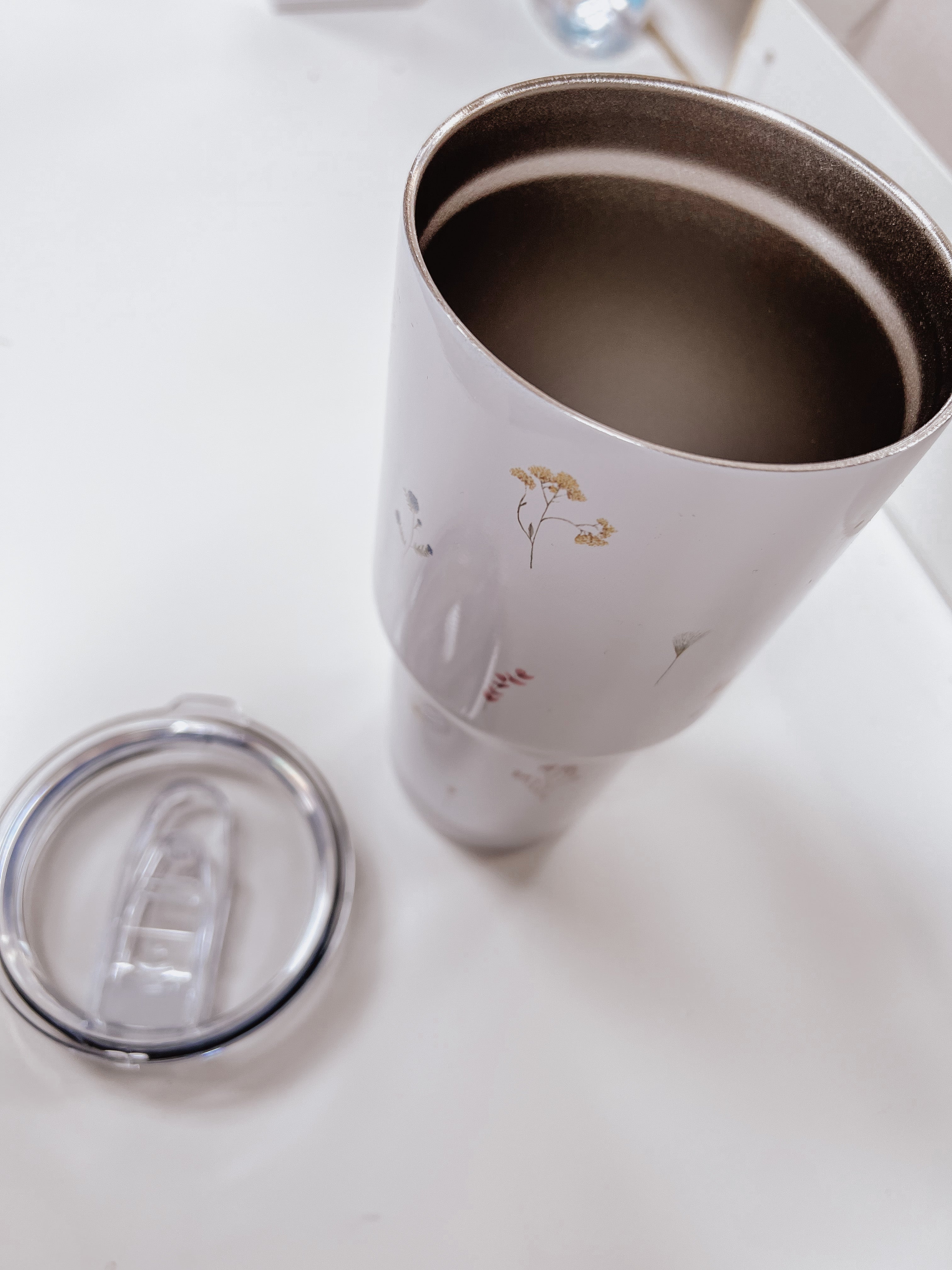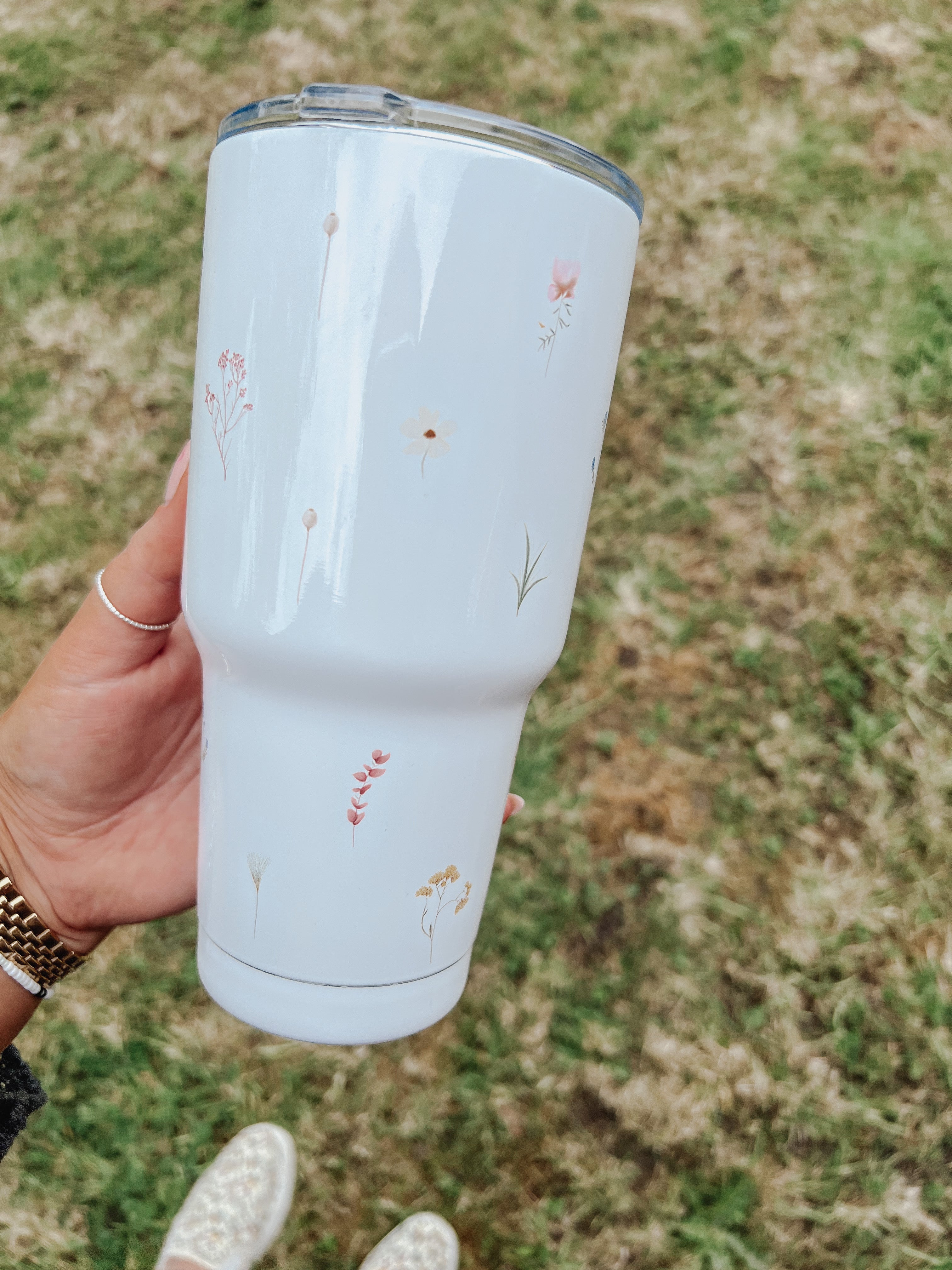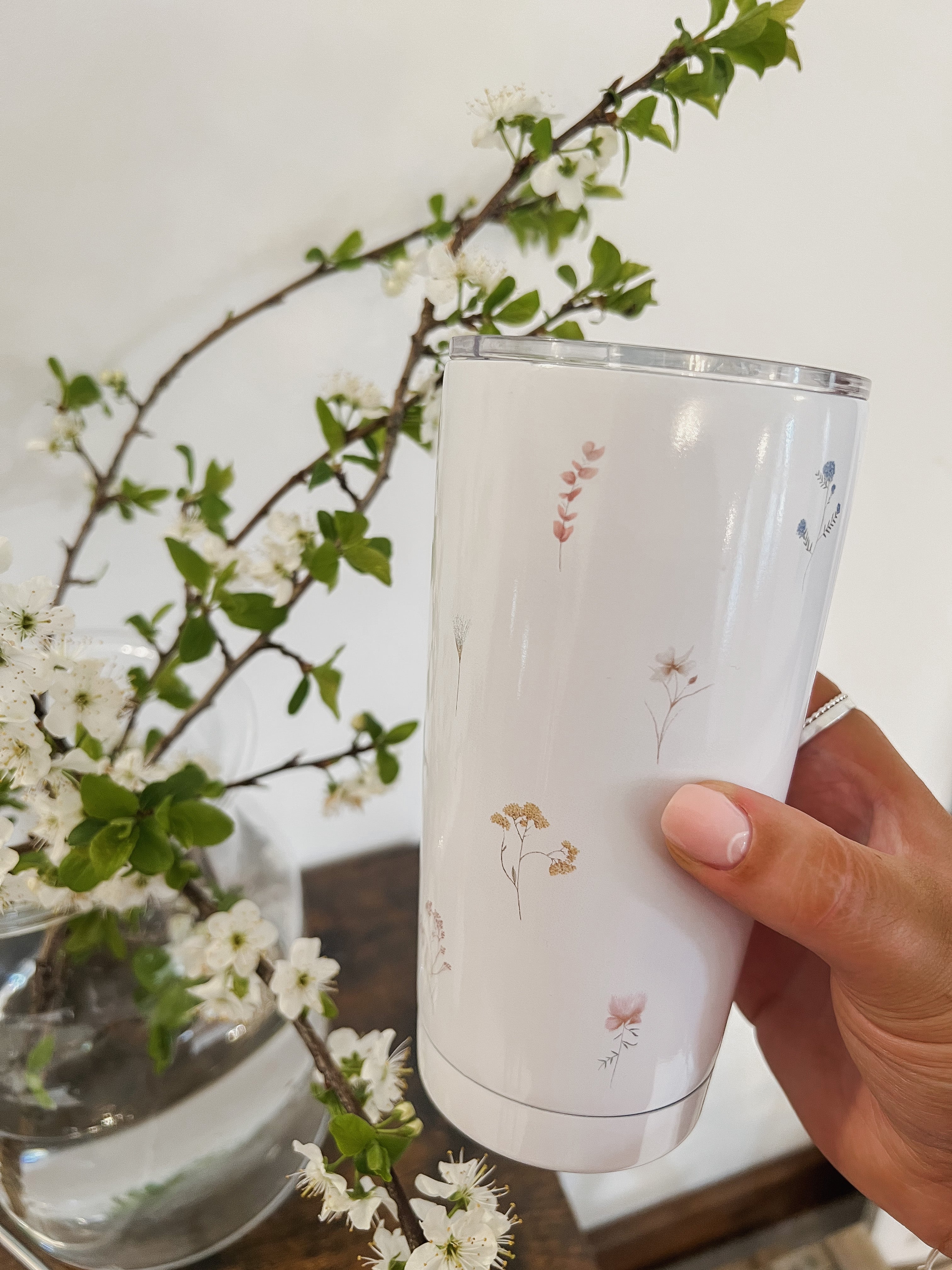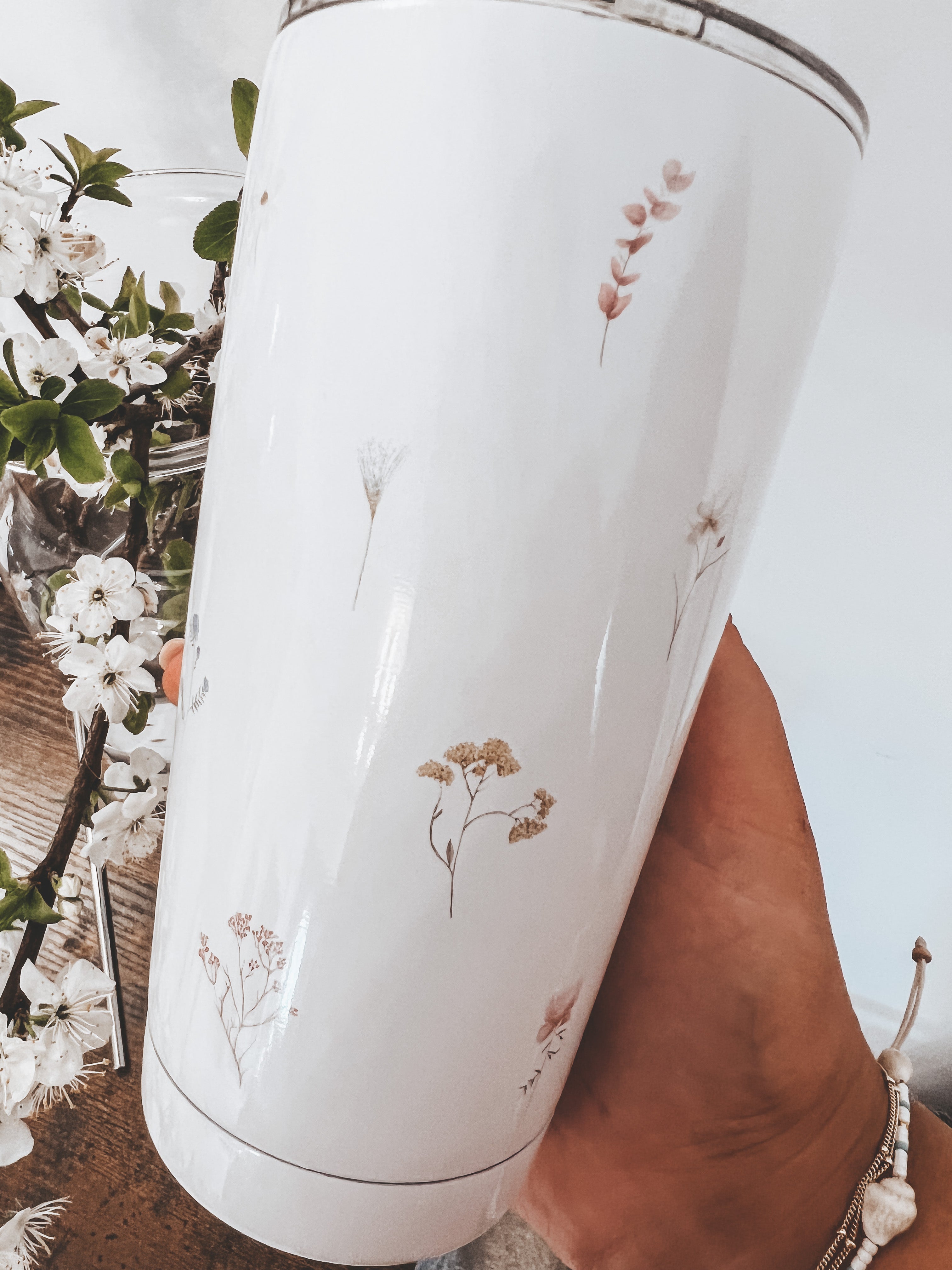 This stunning tumbler features a timeless design of our hand drawn pressed flowers and is perfect for use on any occasion.