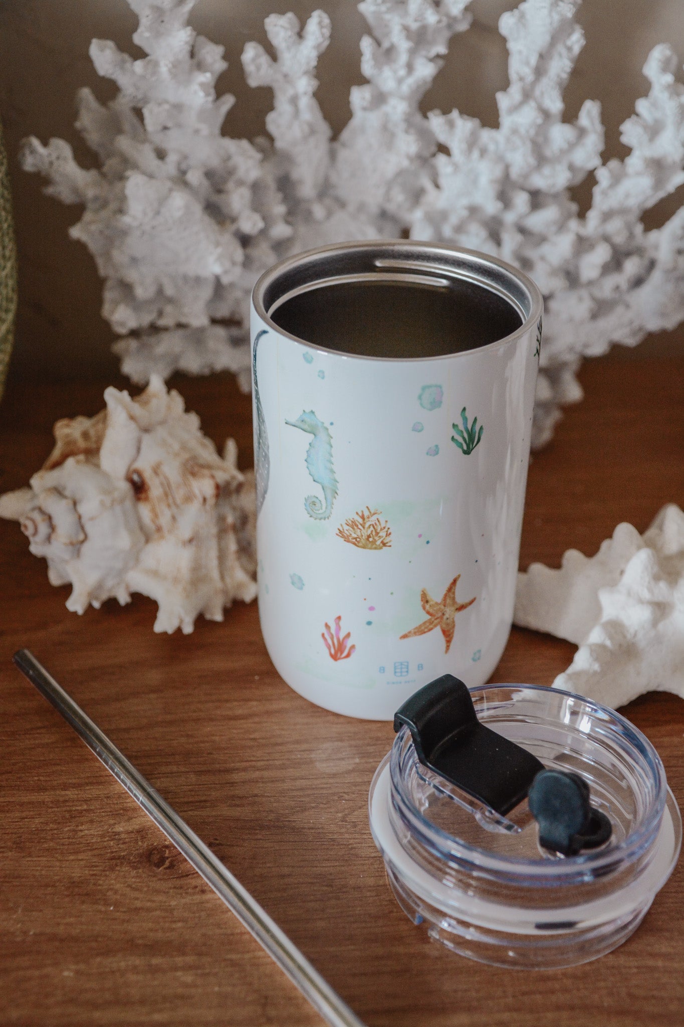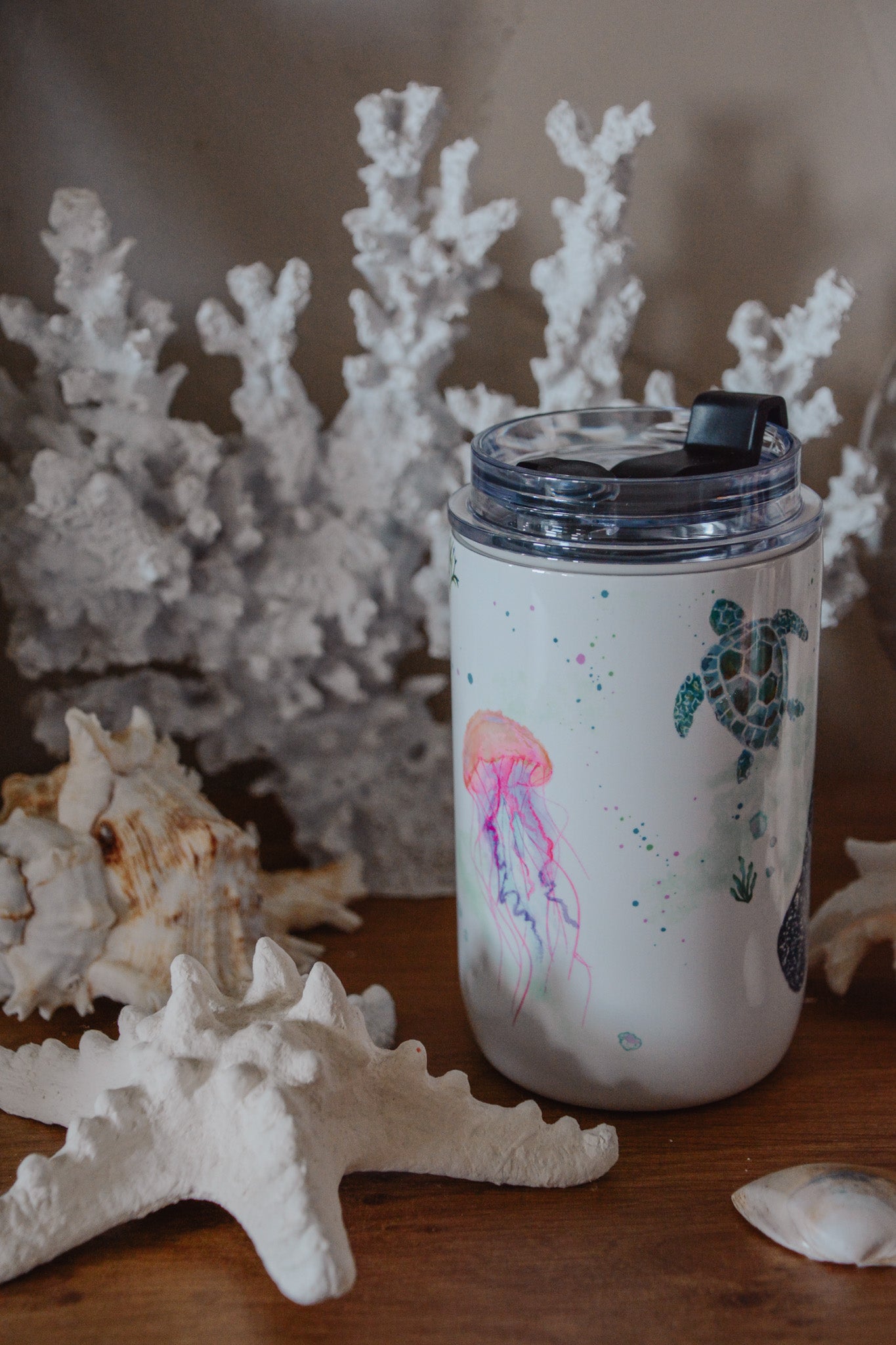 Designed for ocean enthusiasts who appreciate vibrant, eye-catching designs. Its colourful exterior not only celebrates marine beauty but also ensures your drink stays contained with its reliable leak-proof lid. Perfect for on-the-go hydration, this tumbler combines aesthetic appeal with practical durability, making it an ideal companion for both everyday use and adventures near the sea.