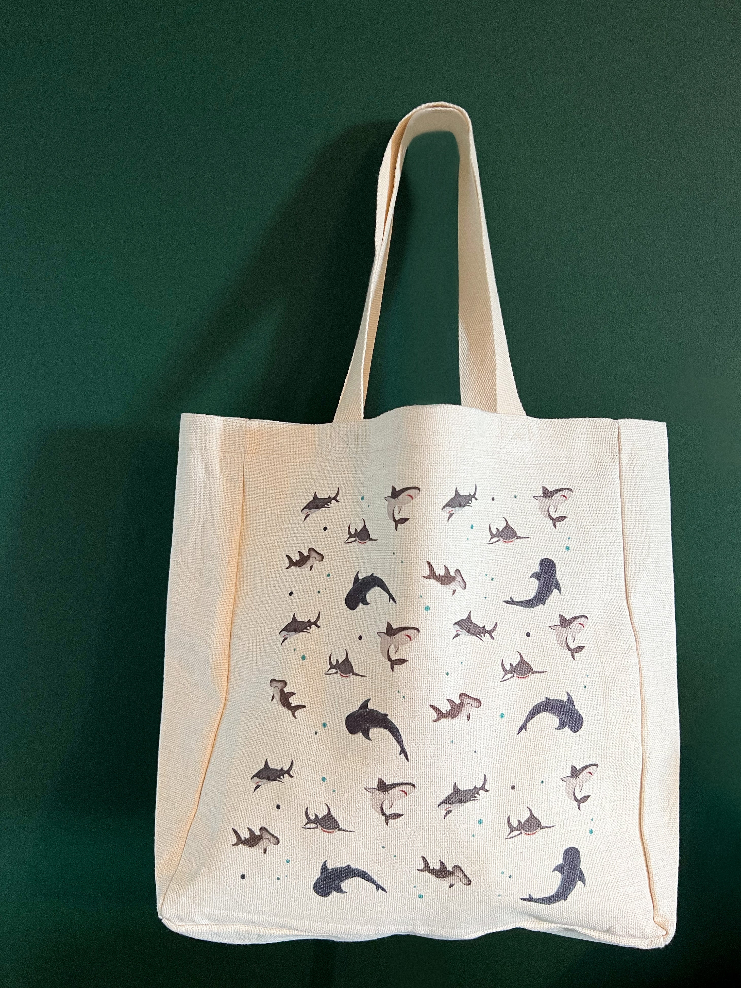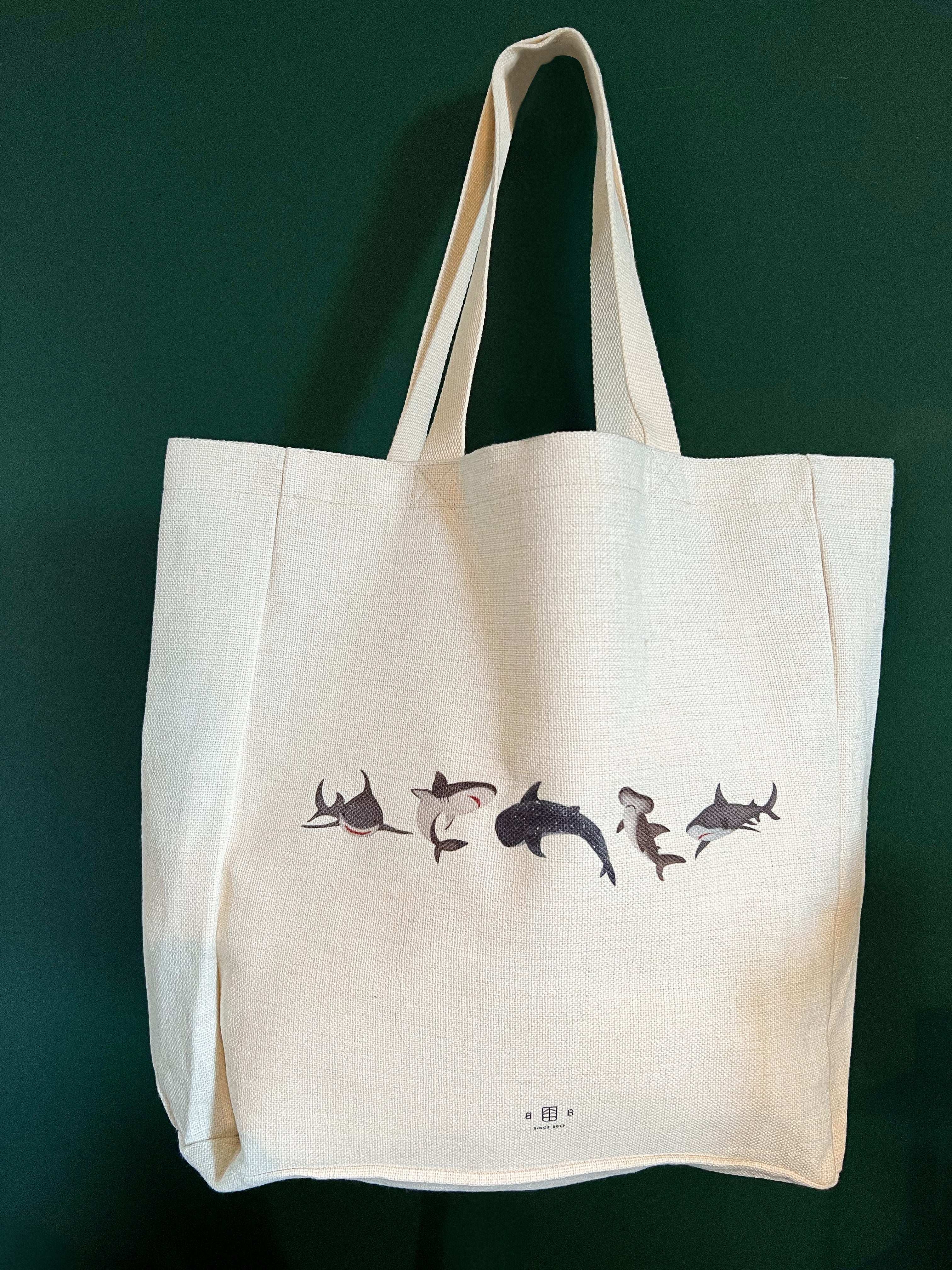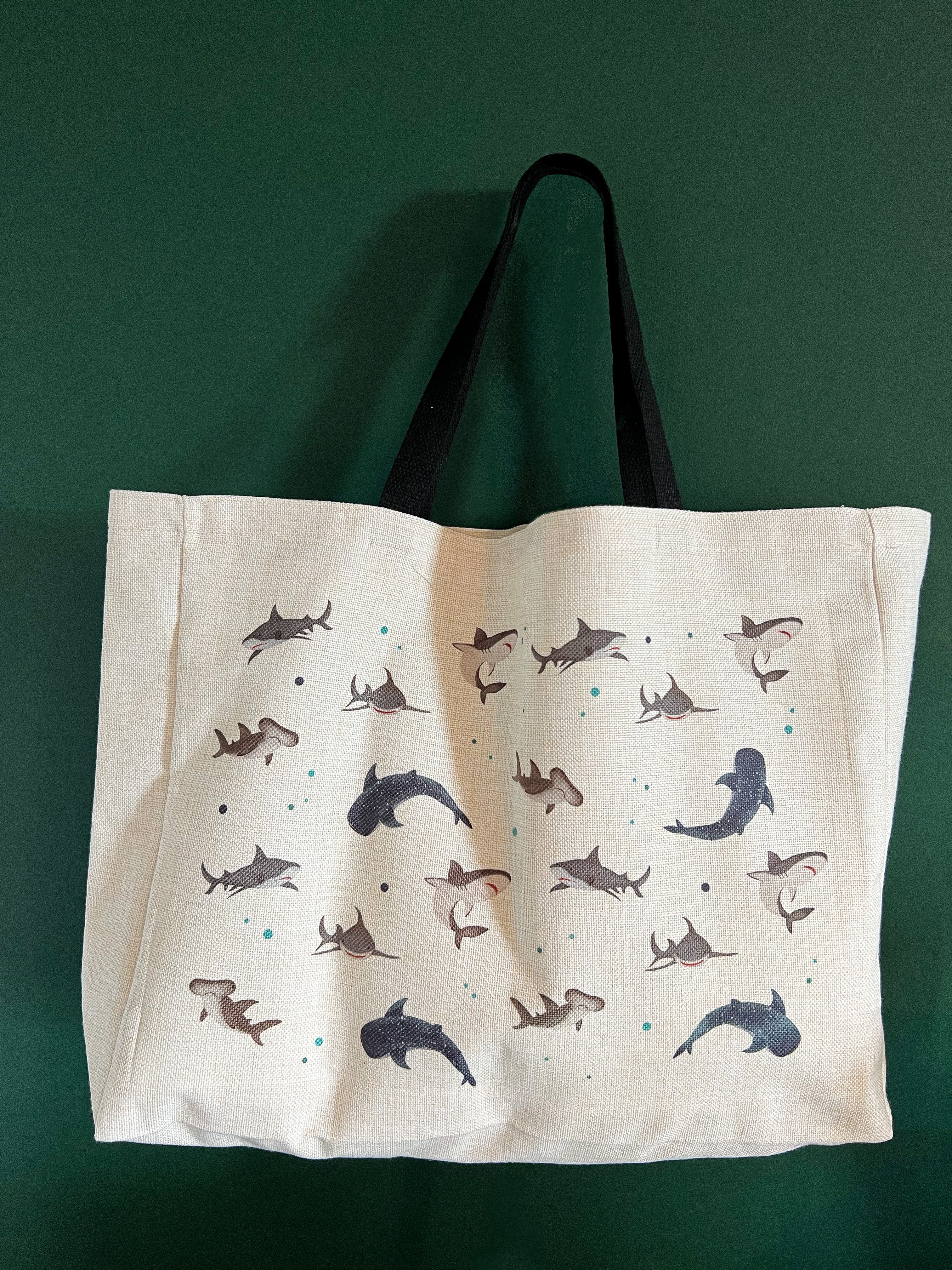 Due to popular demand, we've welcomed our sharky friends design on our favourite linen tote bags!